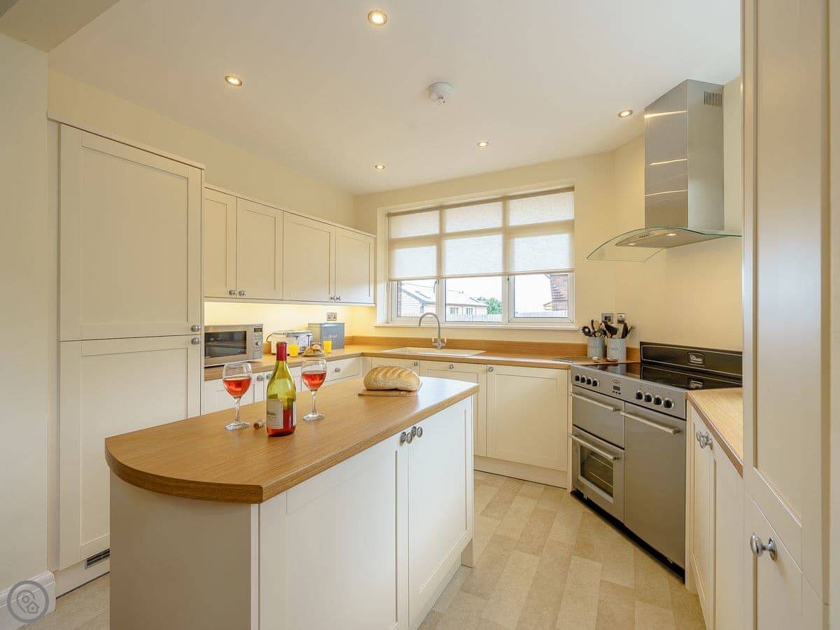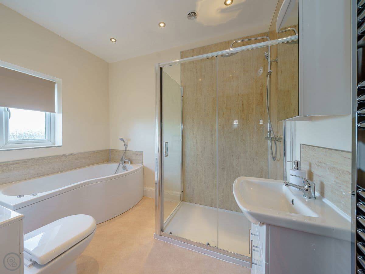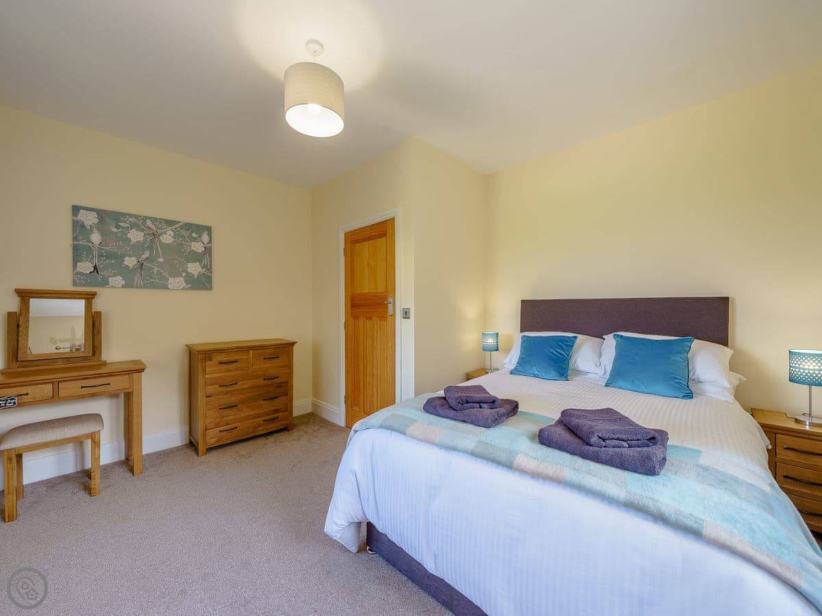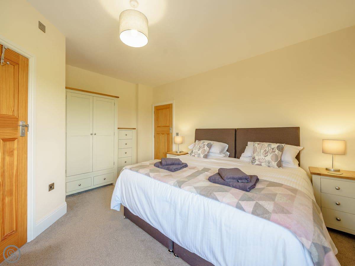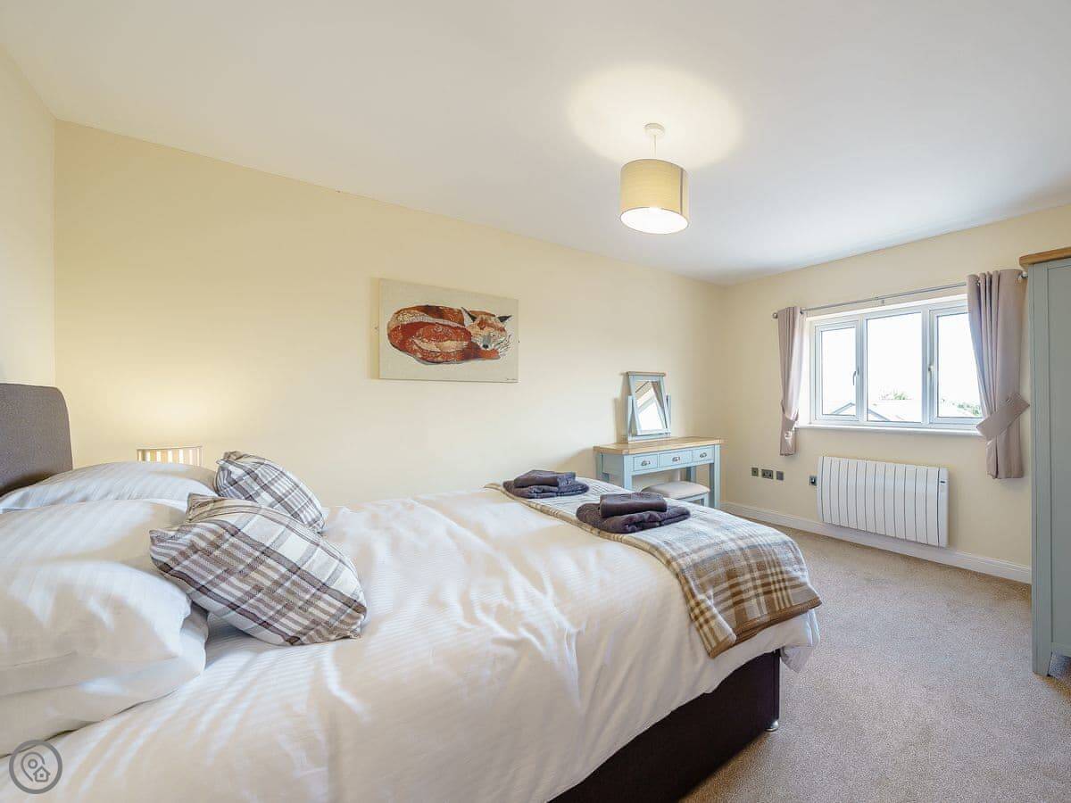 It sleeps ten. Five bedrooms, three bathrooms. It's got a 4 Star rating, which means it's comfortable and well-equipped. Two of the bedrooms are en-suite. Most of the bedrooms can be set up as twins or doubles, just let us know.