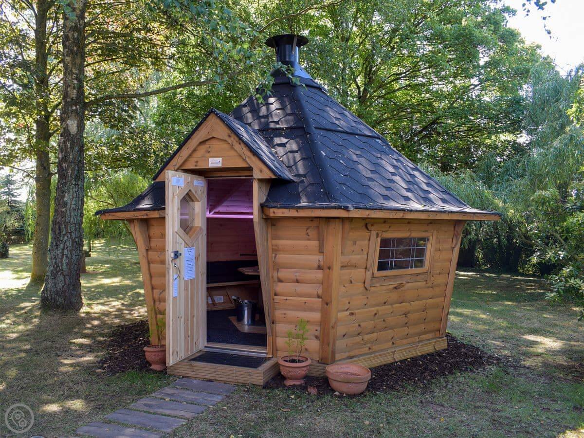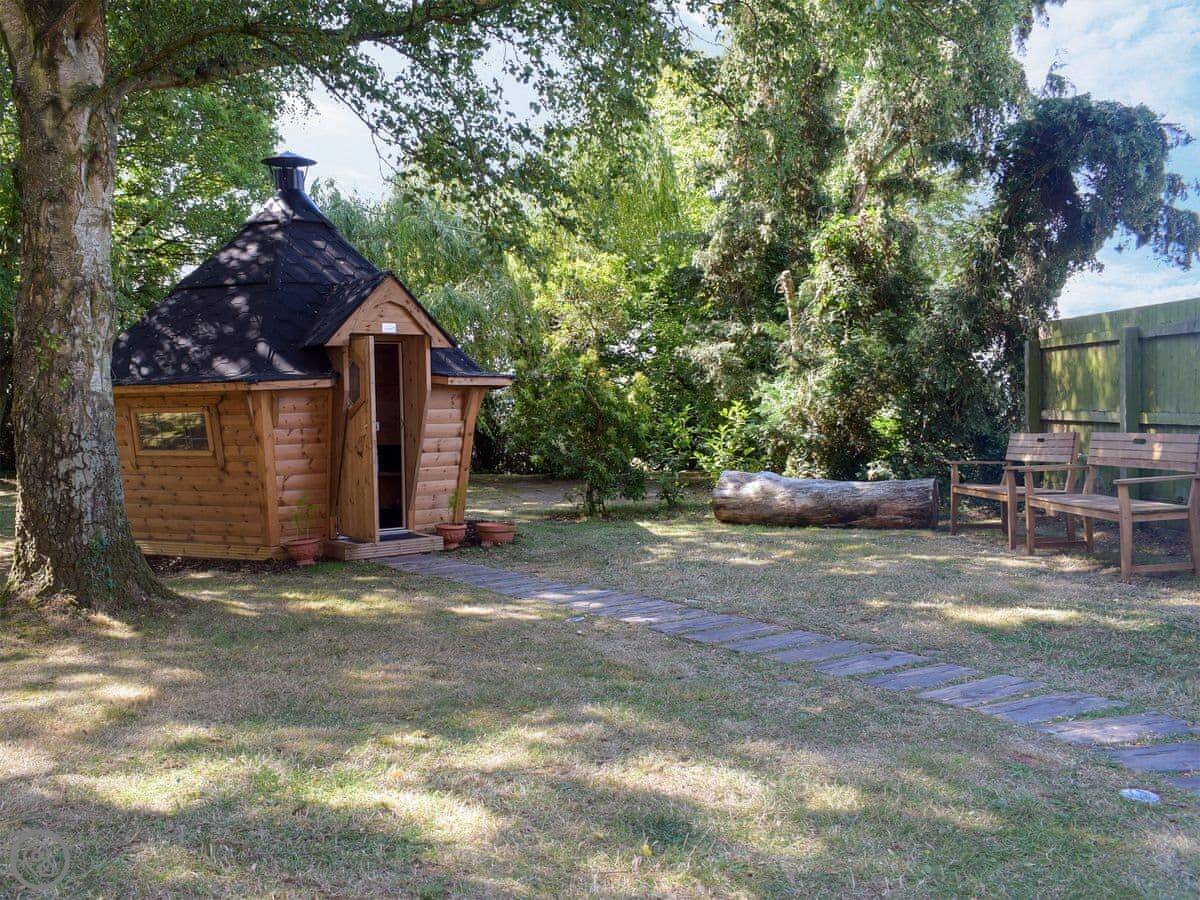 Outside, there's a barbecue hut with proper seating for ten. You can use it year-round.