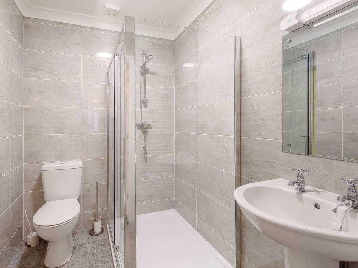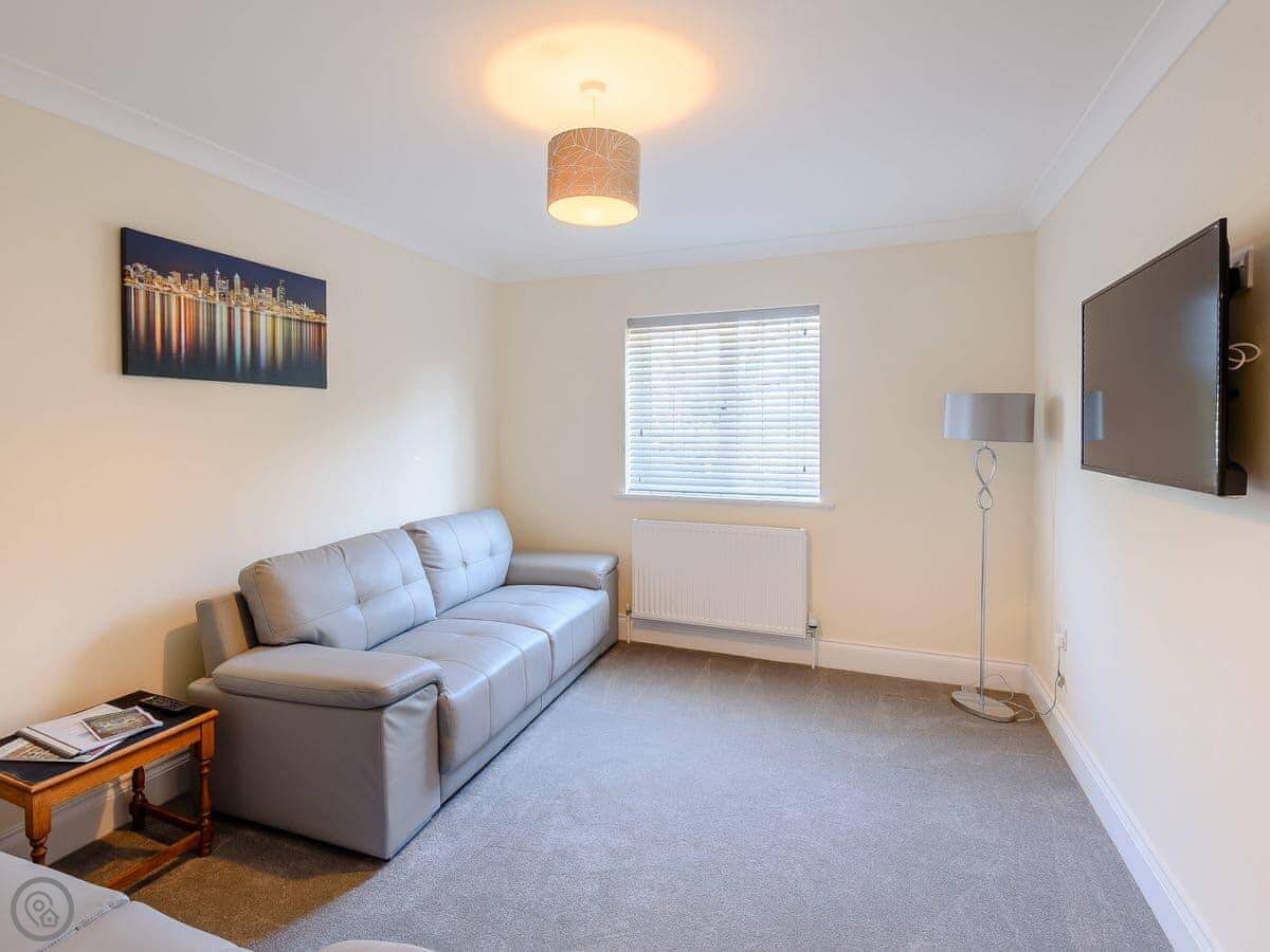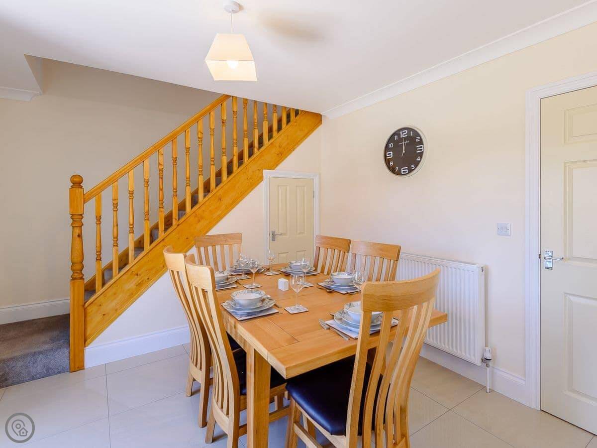 The house sleeps six, in three bedrooms. There are two bathrooms, which helps with a full house. It’s got a 4 Star rating, which means it’s comfortable and well-equipped. Everything is on one level so it’s suitable for wheelchairs, and the doorways are wide enough. The garden is enclosed, which is handy if you've brought a dog. You can bring one dog.