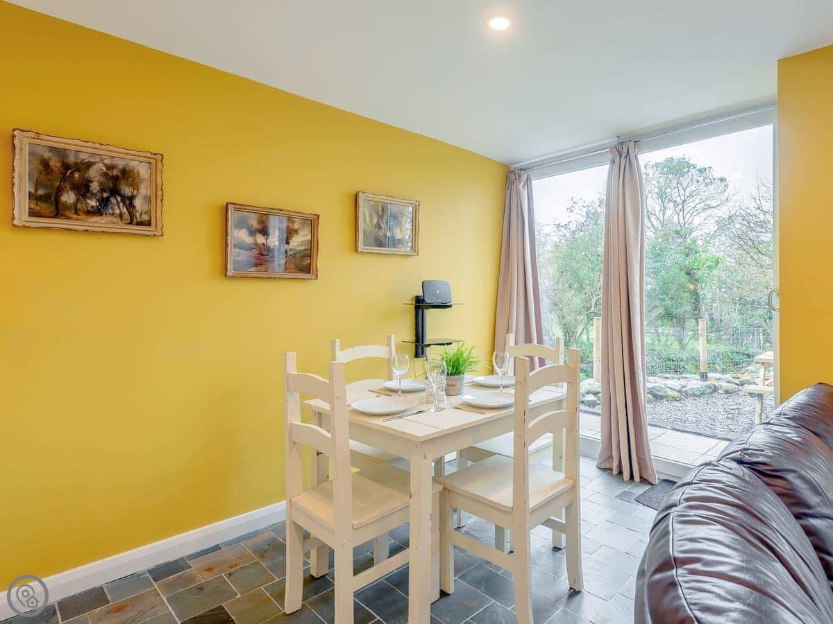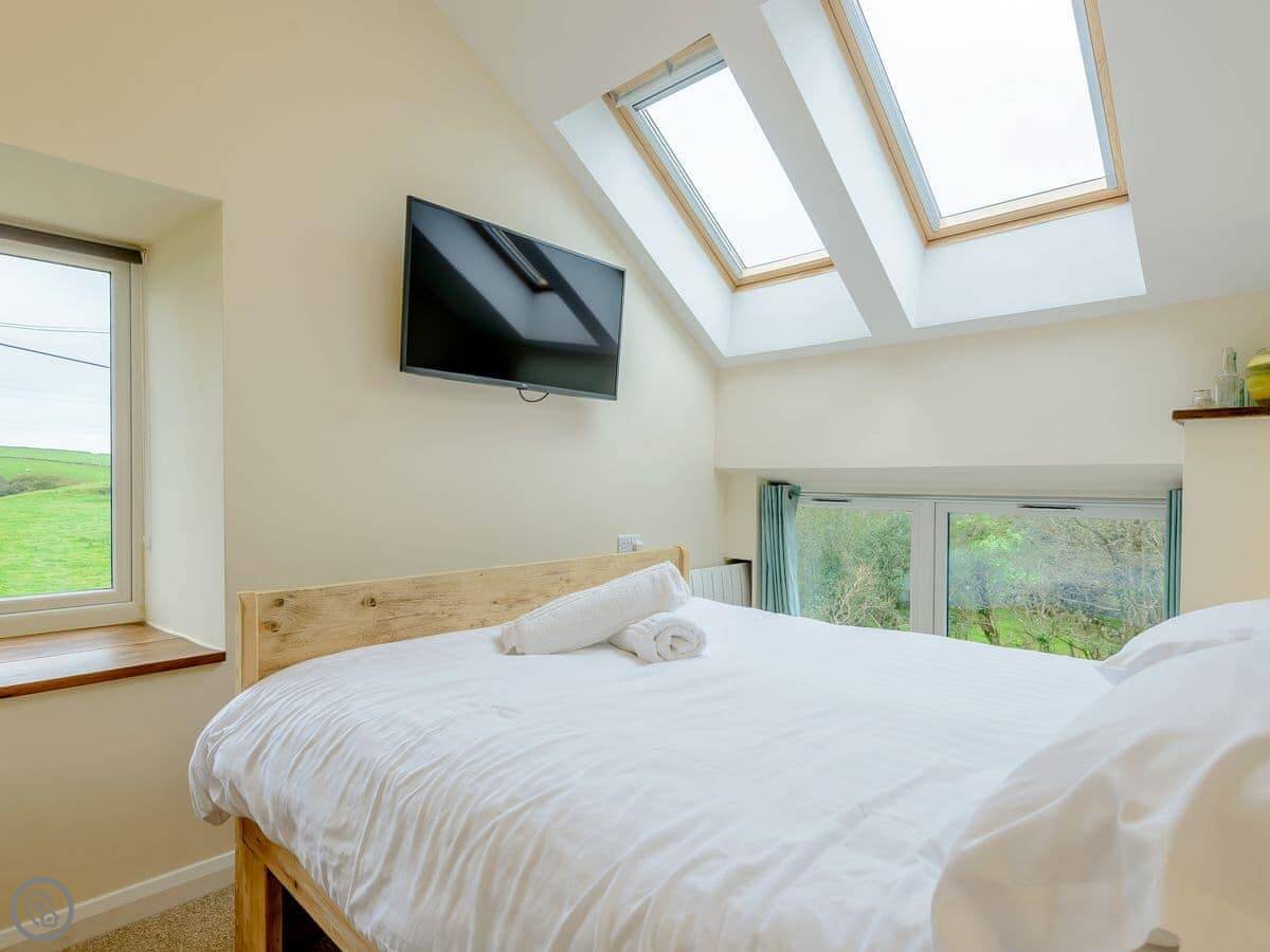 Dutch Barn Two is in Pentrefelin, near Criccieth. It's part of a small group of barns converted into holiday places. This one is semi-detached with the other Dutch barn.