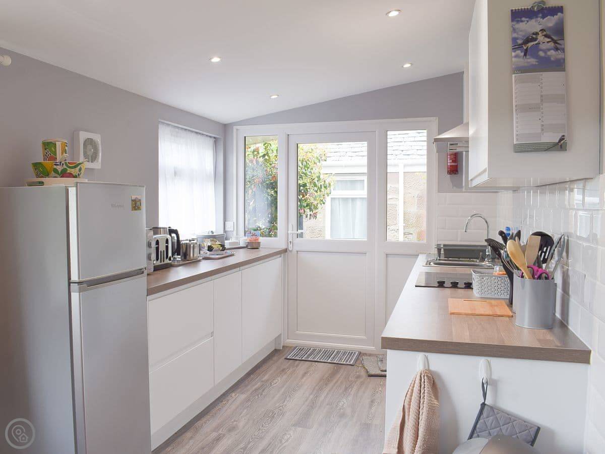 Facilities: it's got a wood burner, a washing machine, WiFi, TV, an enclosed garden with a patio and a BBQ. There's parking. Bedding and towels are included. We provide a cot and a highchair if you need them.