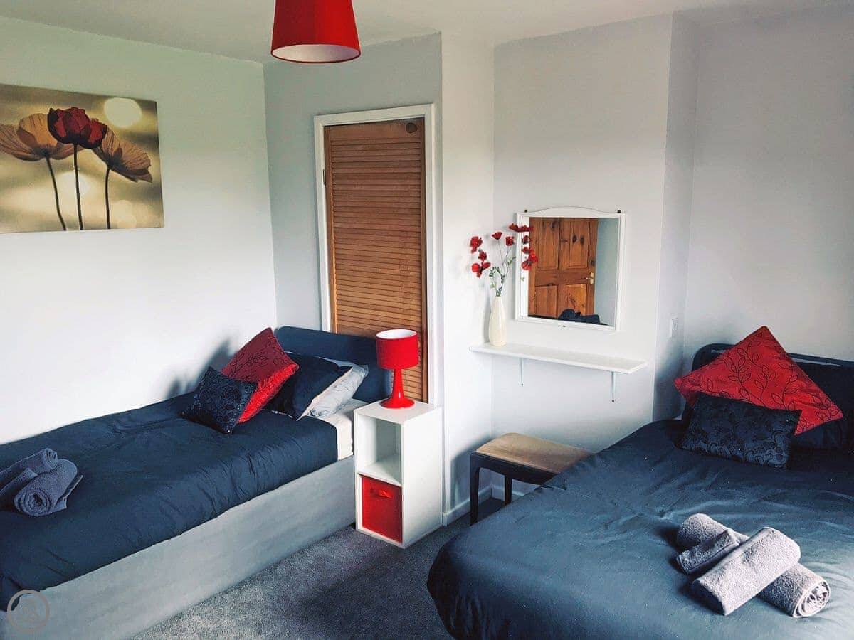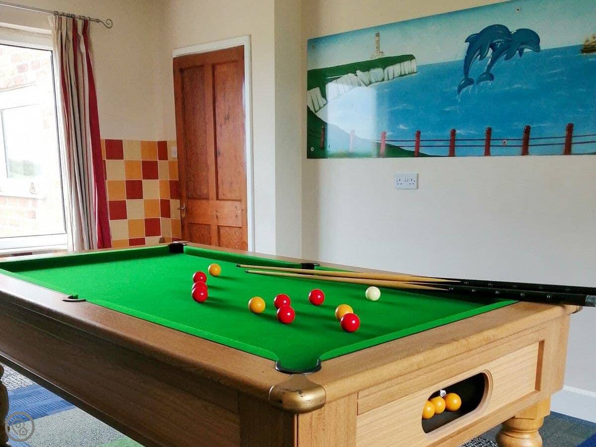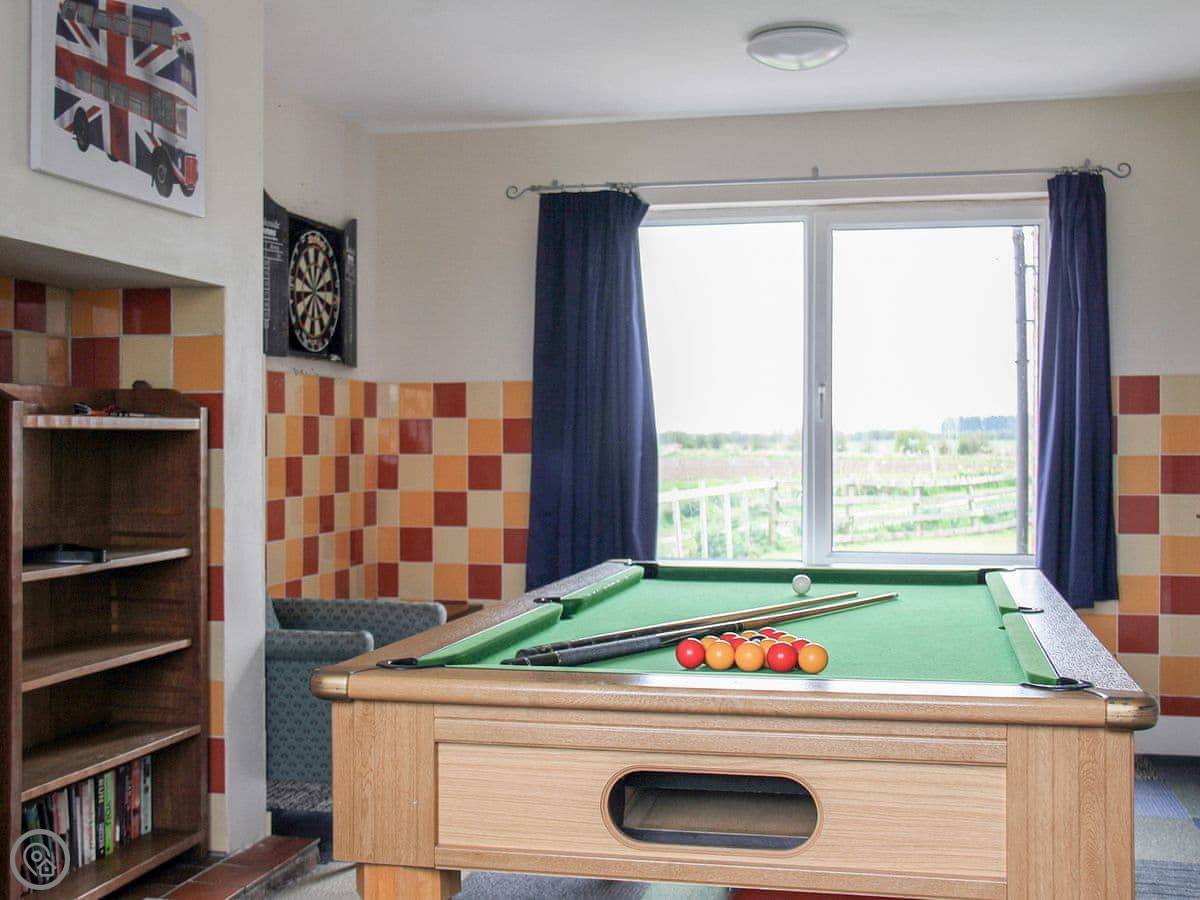 Facilities: everything on the list is there. WiFi, TV, games room with a pool table and dartboard. Bedding and towels are included. You can bring up to three dogs. There's parking for several cars on the drive.