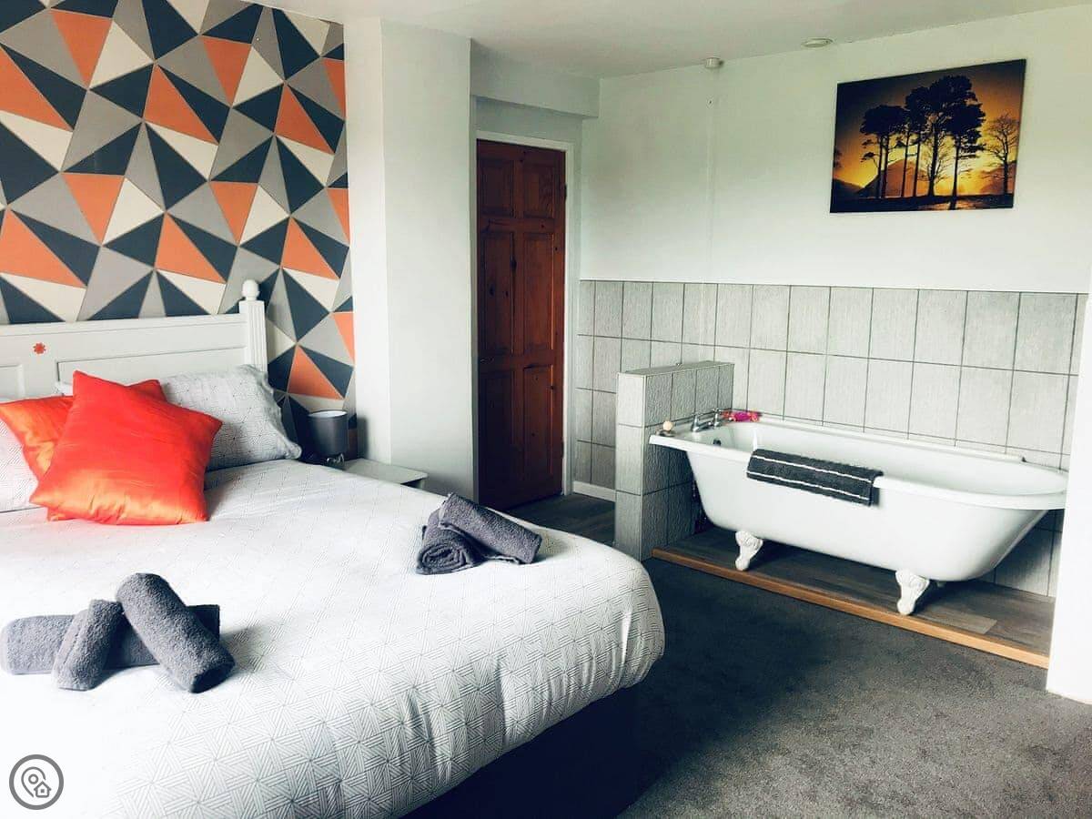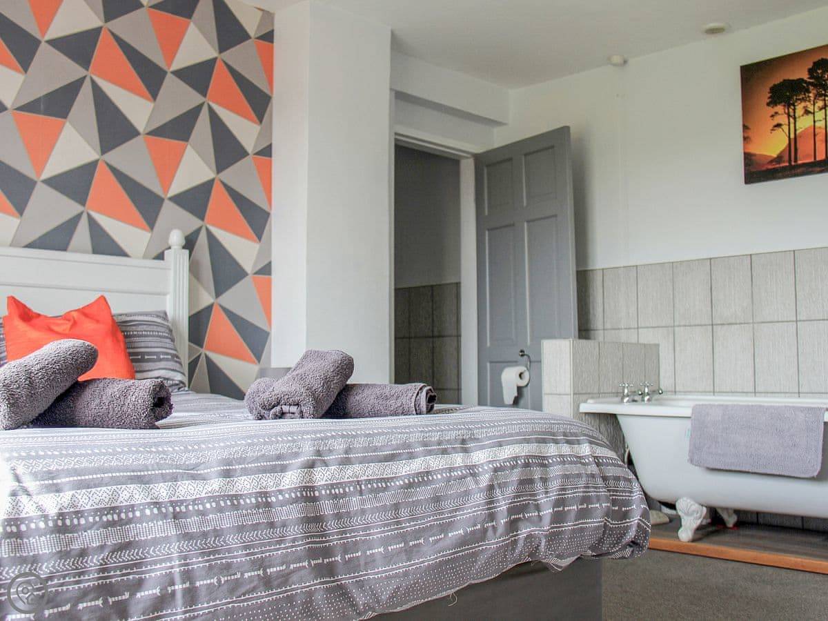 Upstairs, the bedrooms are named after wildflowers. Two of them have en-suite bathrooms. One room, Sulphur Cosmos, has a freestanding bath in the bedroom itself. Another, Fairy Toadflax, has a little sunroom attached.