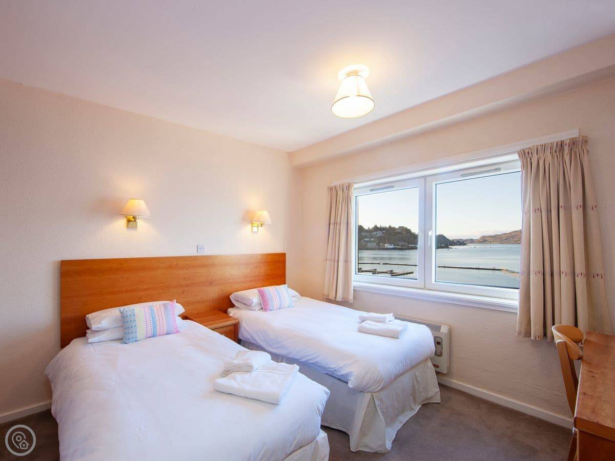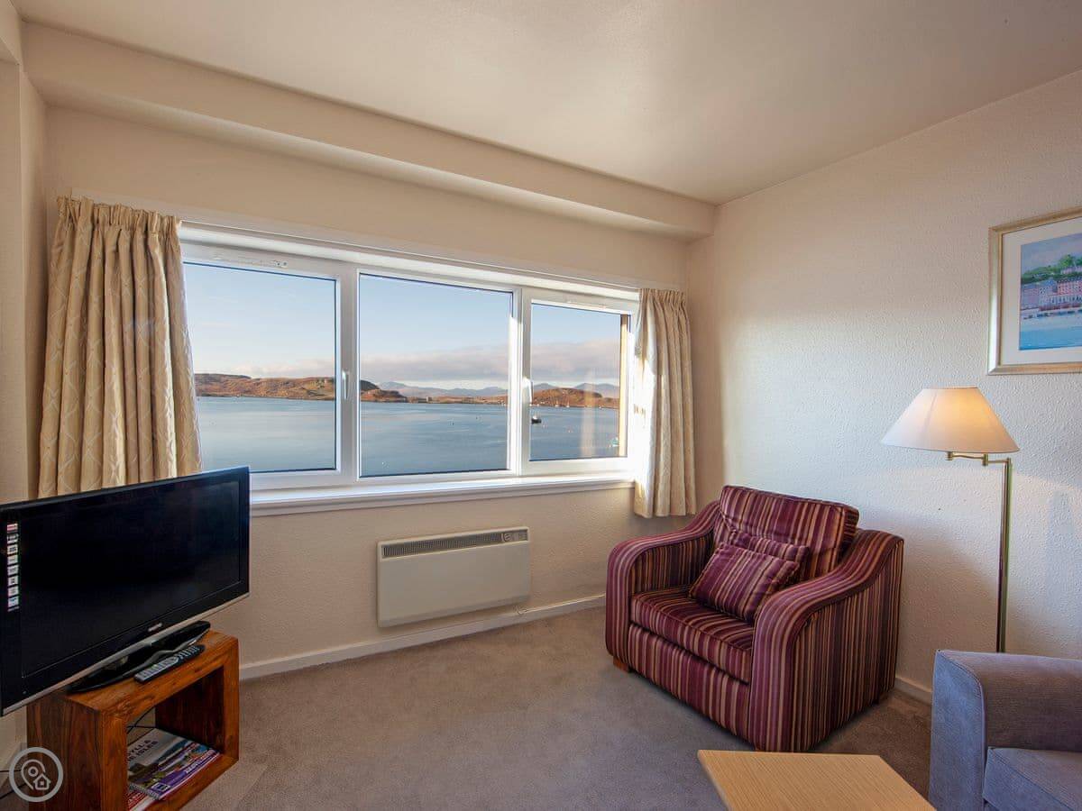 Jura 1 is a dog friendly apartment, with an open plan living/dining room/kitchen with spectacular views over Oban Bay. There is a twin bedroom and shower room. Maximum sleeps 2. Beach miles. Shop, pub and restaurant 500 yards.