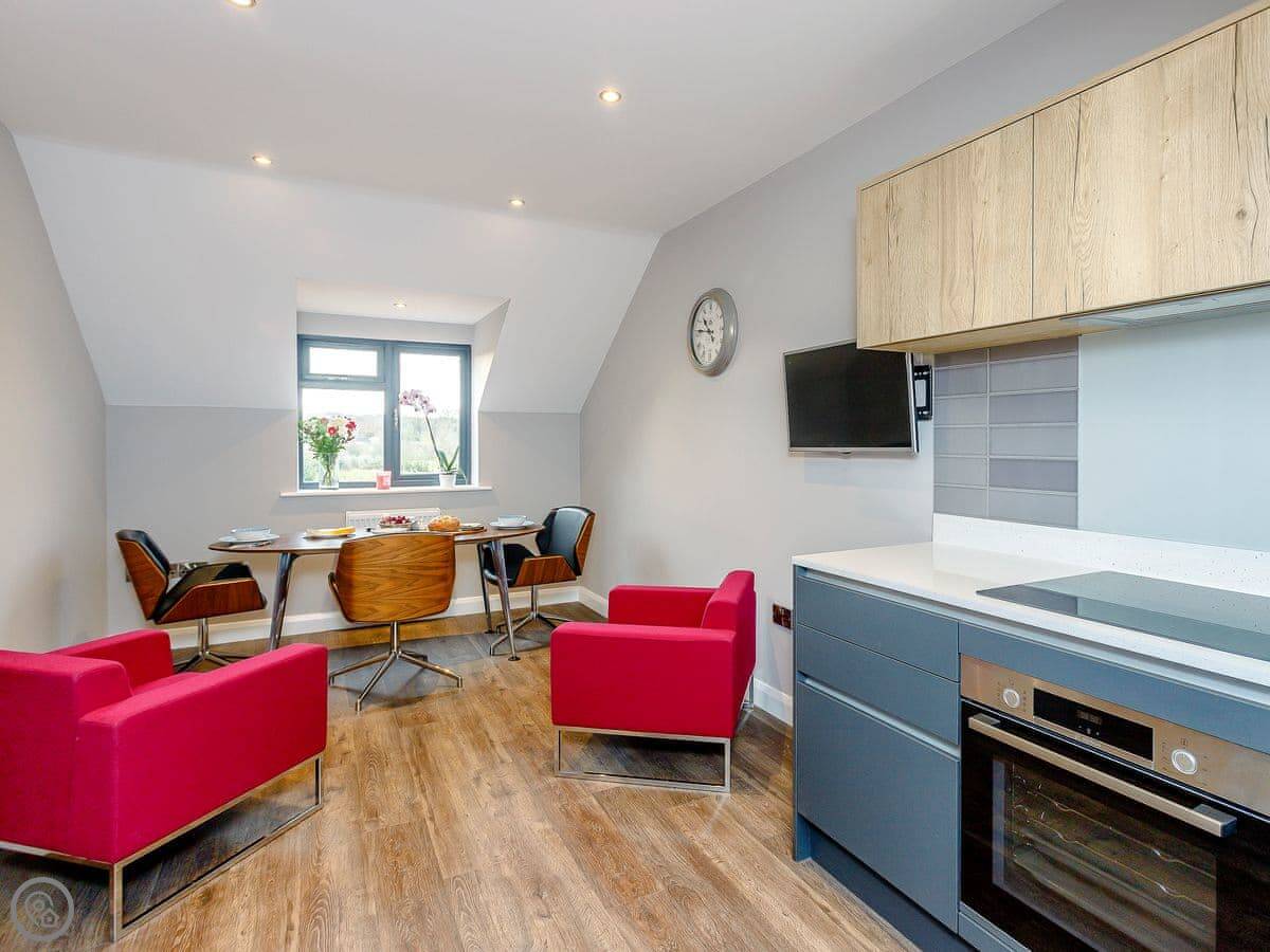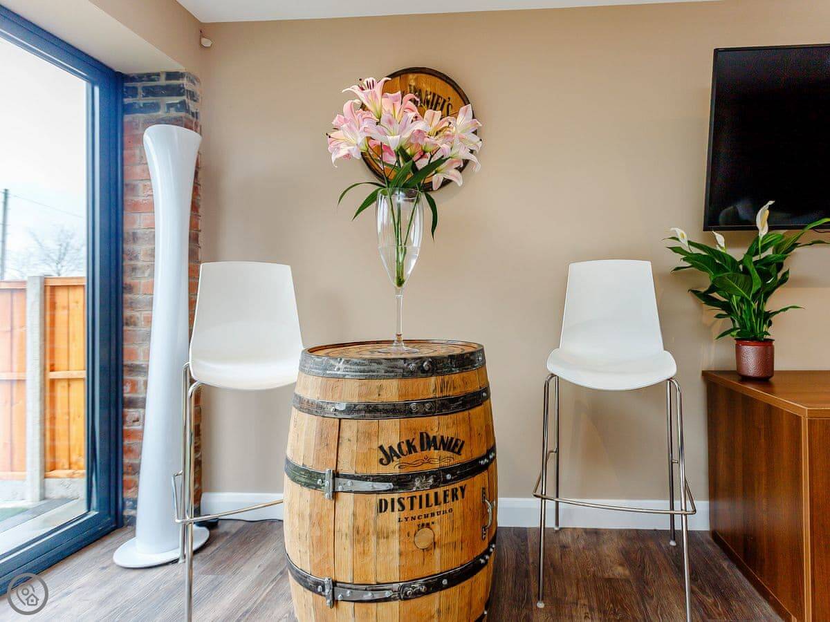 A new property built in 2019 especially for self-catering stays. This unique property is set over two floors with an open plan living and dining room and a small kitchenette, perfect for drinks and snacks, with bi fold doors to the front where you can enjoy sitting outside in the enclosed courtyard overlooking the Leicestershire countryside and patio doors to the back leading to the private hot tub. Upstairs you will find the well-equipped kitchen/breakfast room and lovely bedrooms.