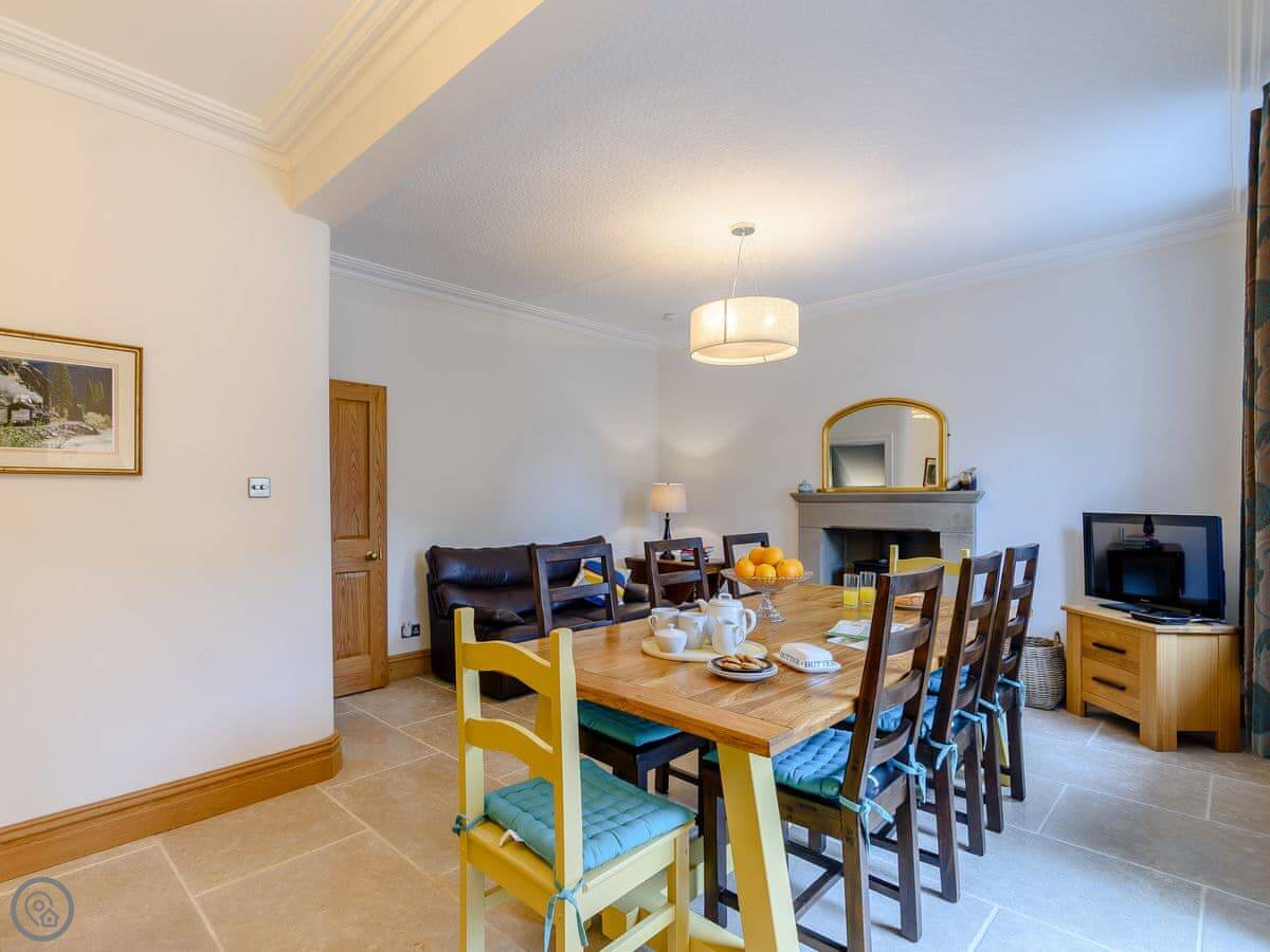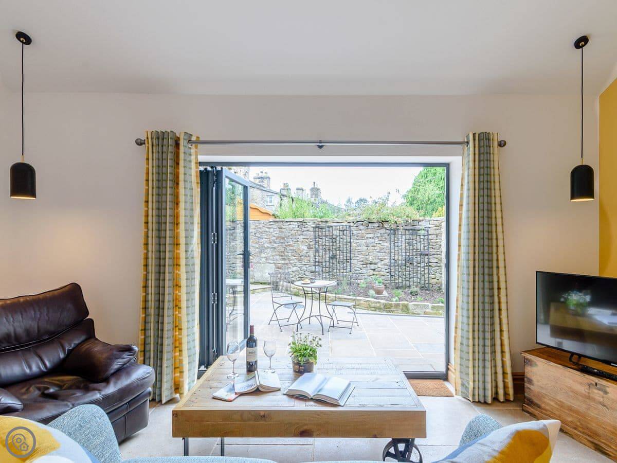 The kitchen is large and has a SMEG electric range cooker. There's a seating area in there with folding doors to the garden. The utility room has a washing machine and a coffee machine. There are two living areas, both with wood burners and Smart TVs.