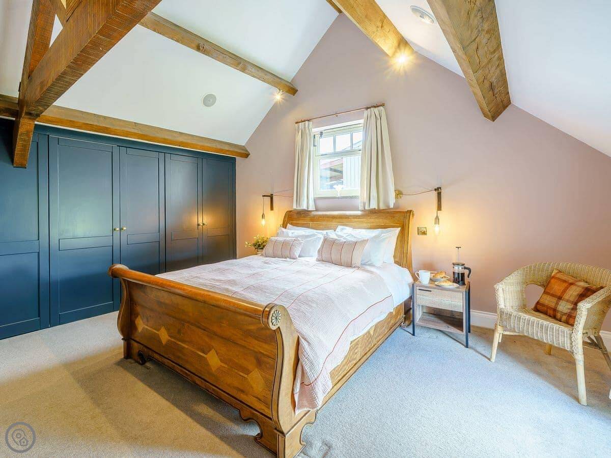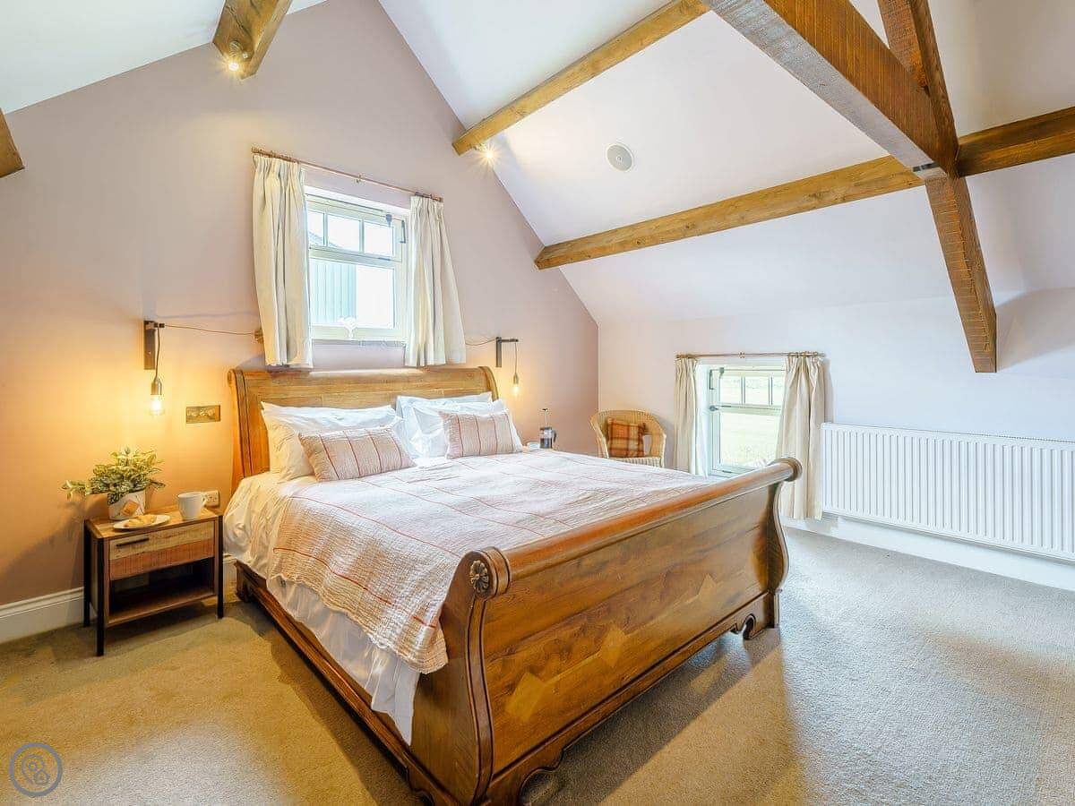 It sleeps six in three bedrooms. Two of them have king-size beds, one has a double. There are two bathrooms, one is an en-suite to the main bedroom with a shower and a bath. The other is a shower room.