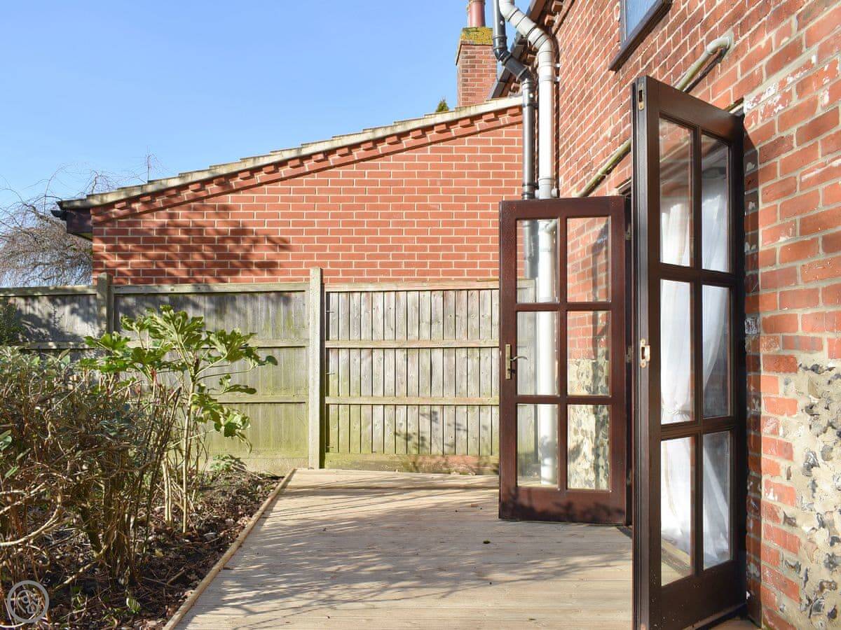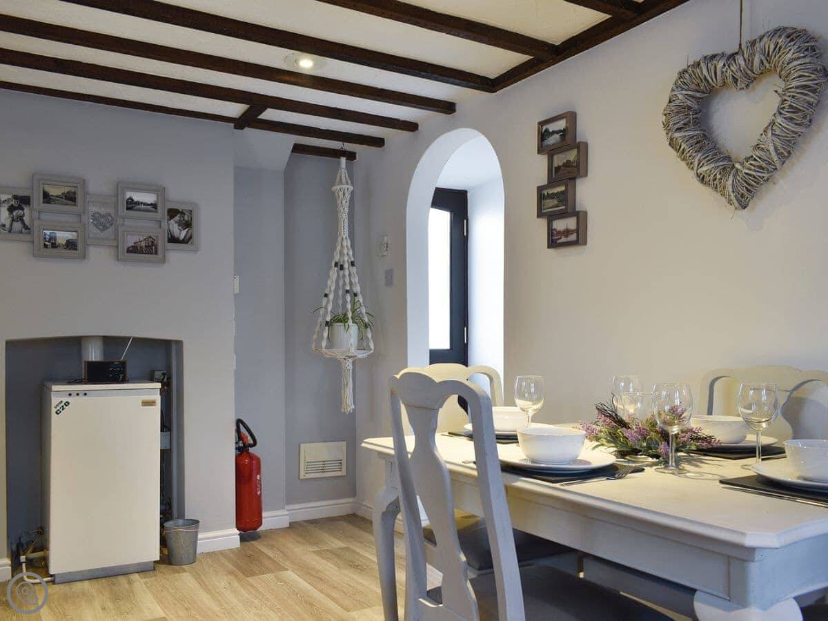 It's an older cottage with beams. It's warm and comfortable. The living room has a woodburning stove. The kitchen is a decent size and you can eat there. The garden has a deck and is enclosed, which is good if you have dogs. We take up to two pets.