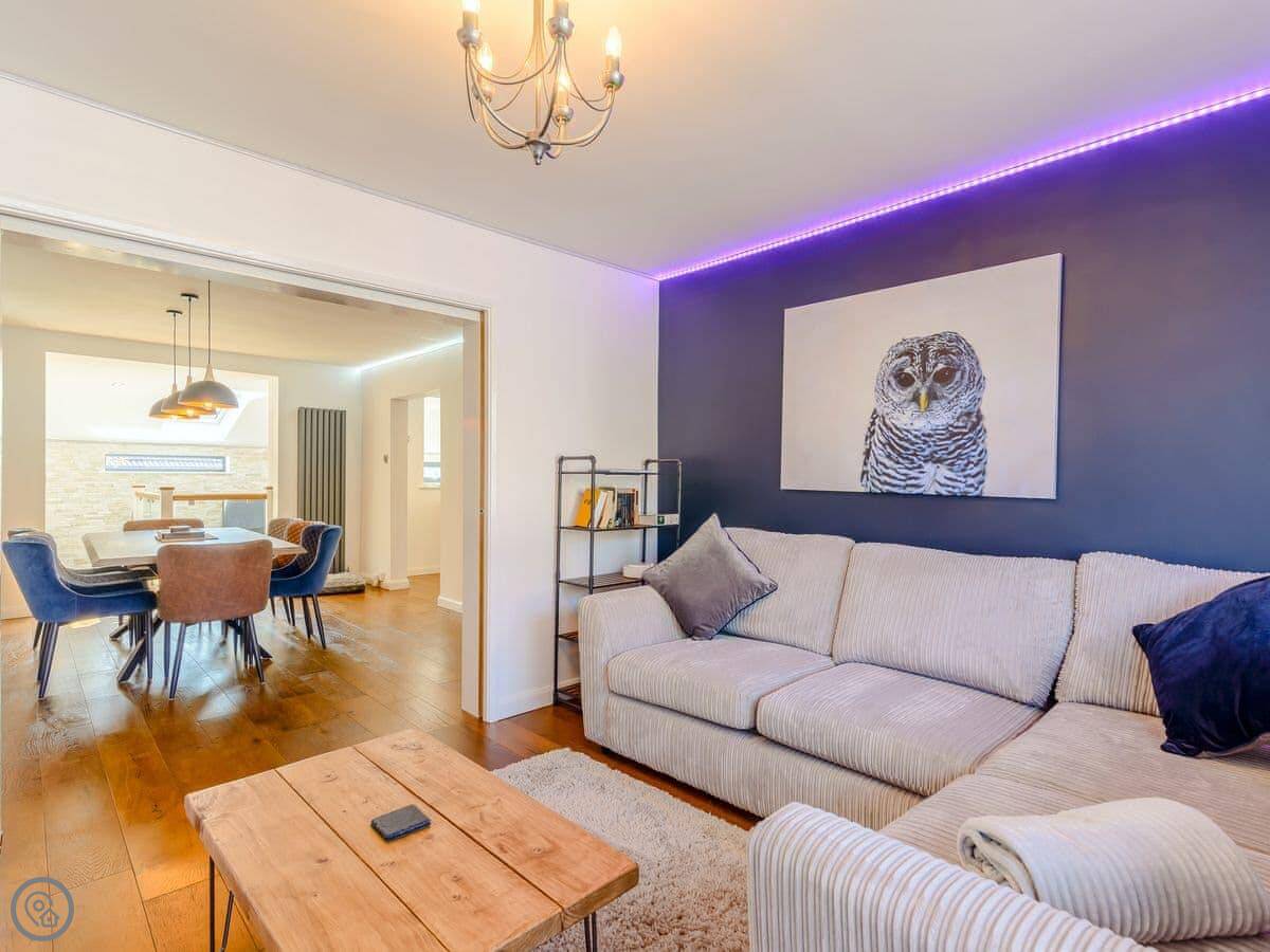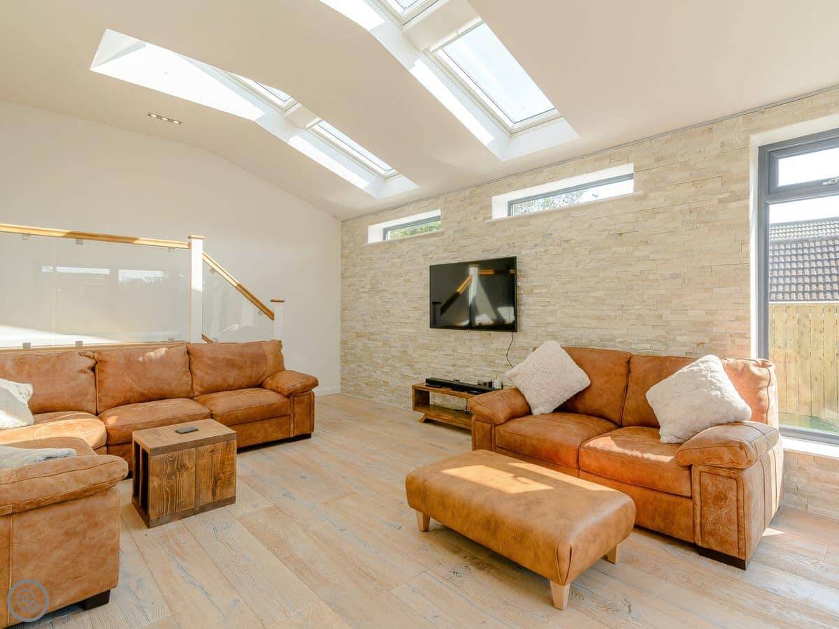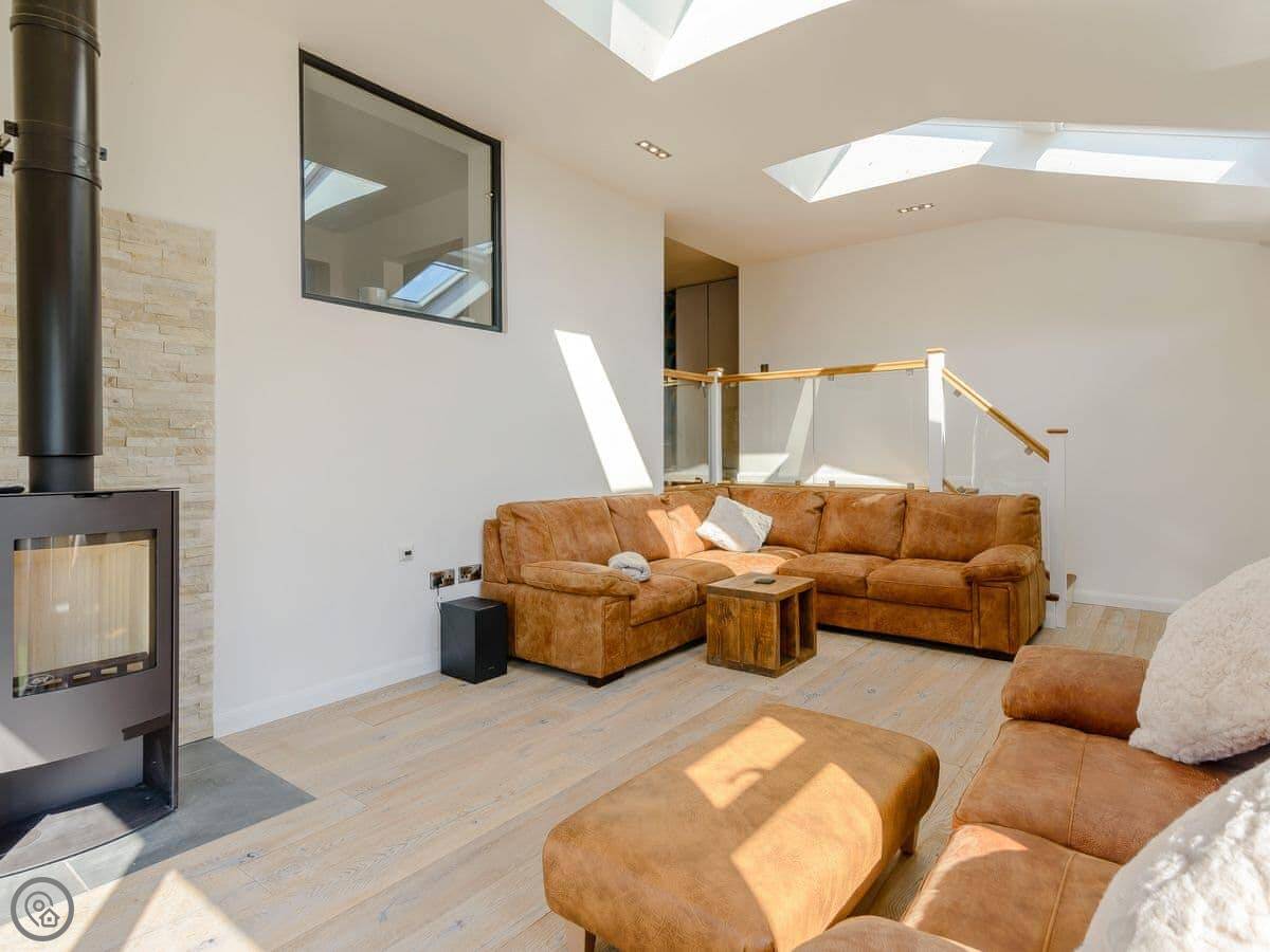 Built in the 1950’s, this property, set over three levels, has been completely transformed to provide a truly incredible family holiday home. The owner has gone to great lengths to ensure that Carmel provides the highest level of luxury. On the ground floor there’s an open plan dining area opening out onto the kitchen where you can enjoy home cooked family meals together. This then leads through a sliding door to the cosy snug complete with a TV and a double sofa bed. On the ground floor there is also a twin bedroom and a shower room. From the dining room, steps lead down to the living room, a spacious and bright heart of the home with a crackling wood burner and which leads out onto the enclosed garden. This south-facing garden is a sun trap, with a summerhouse, artificial lawn and a barbecue. Up on the first floor there are three bedrooms, one of which has an en-suite shower room, and there is a separate family bathroom.