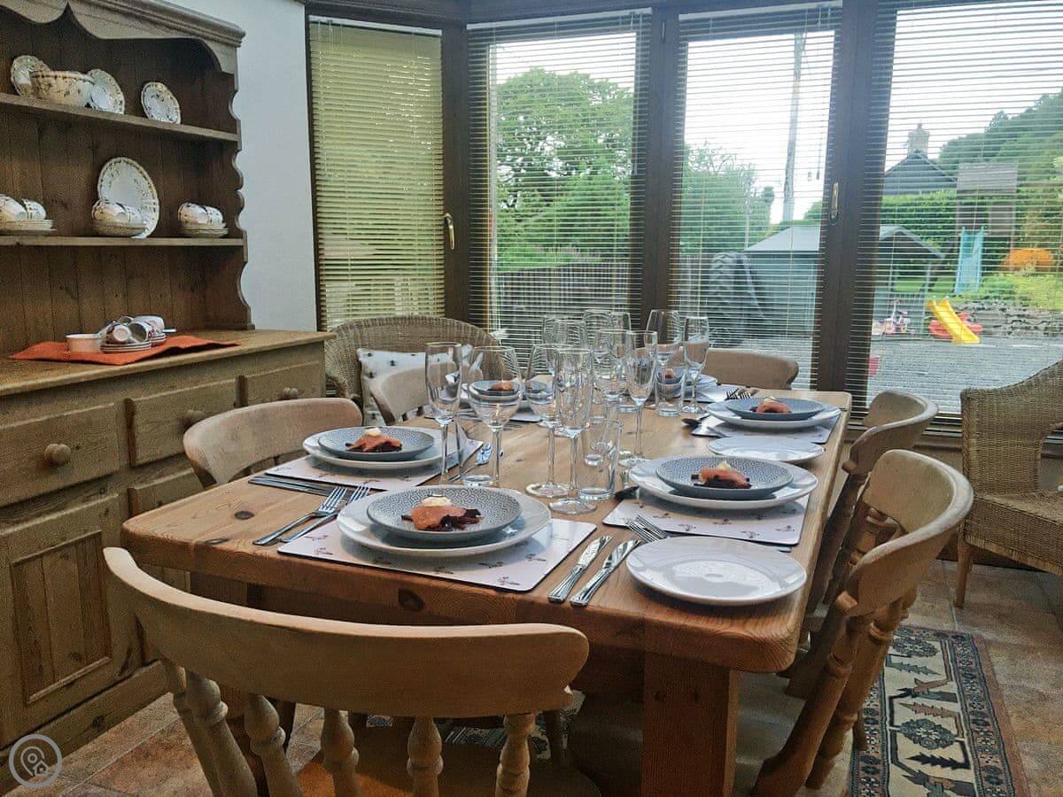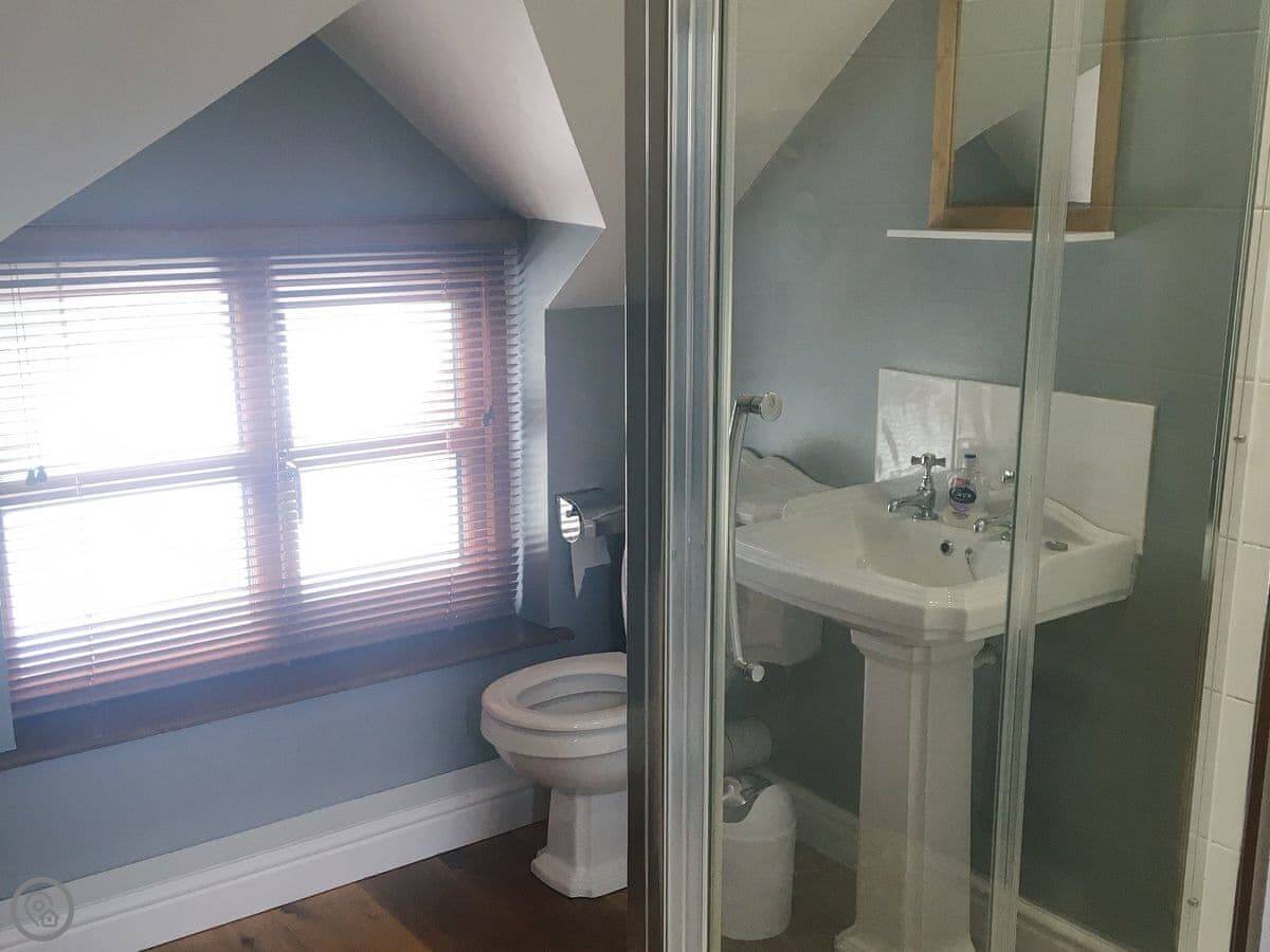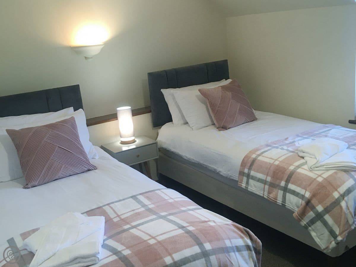 Abercyros Cottage is in Llangammarch Wells. It's a detached place, so no neighbours through the walls. It sleeps eight, in four bedrooms. Every bedroom has its own bathroom, which is handy with that many people.