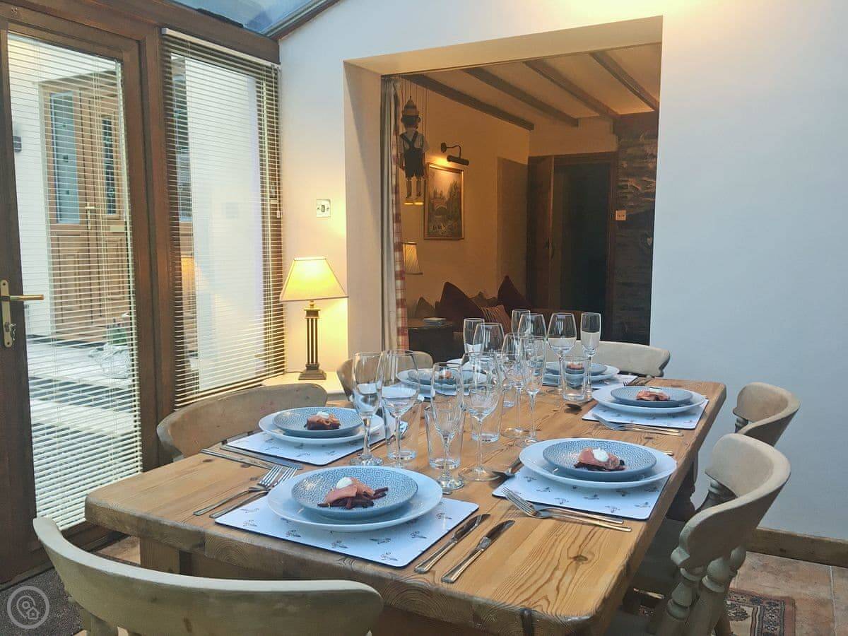 In terms of stuff, it has the basics: WiFi, TV, washing machine, dishwasher. Bedding and towels are included. We can provide a cot and highchair. The entrance is wheelchair accessible, but I'd suggest getting in touch for specifics as the layout inside is on one level except for one step into the living area.