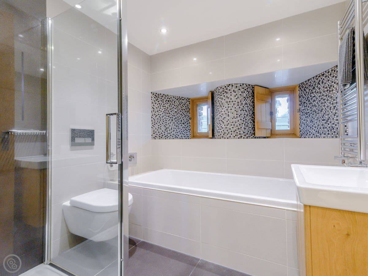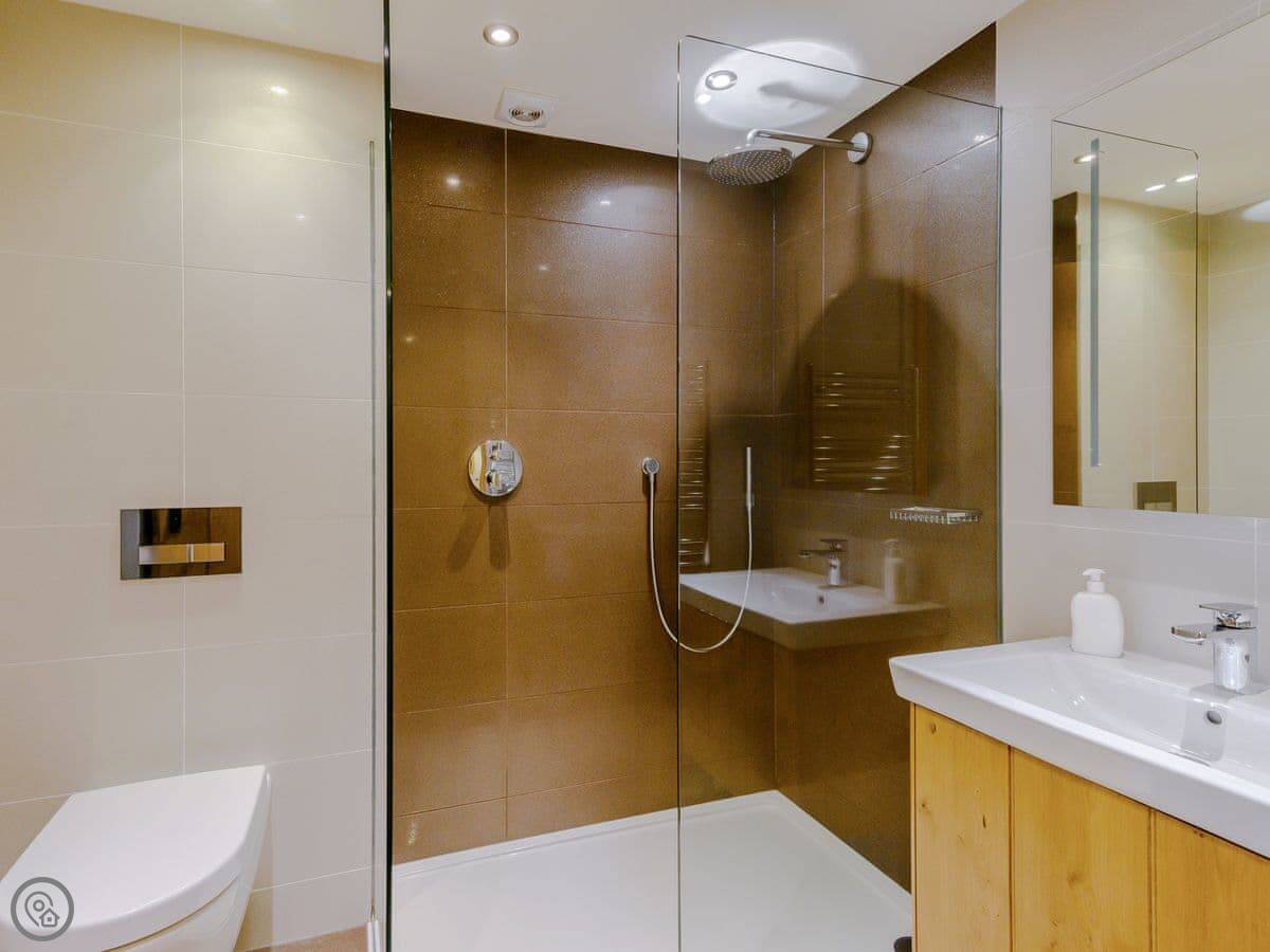 It's a 5 Star place. That means it's well-finished and has the things you'd expect for a larger group. The master bedroom has an en-suite with a big shower. The other bathrooms have showers too, and one has a bath.