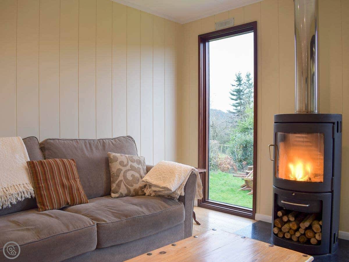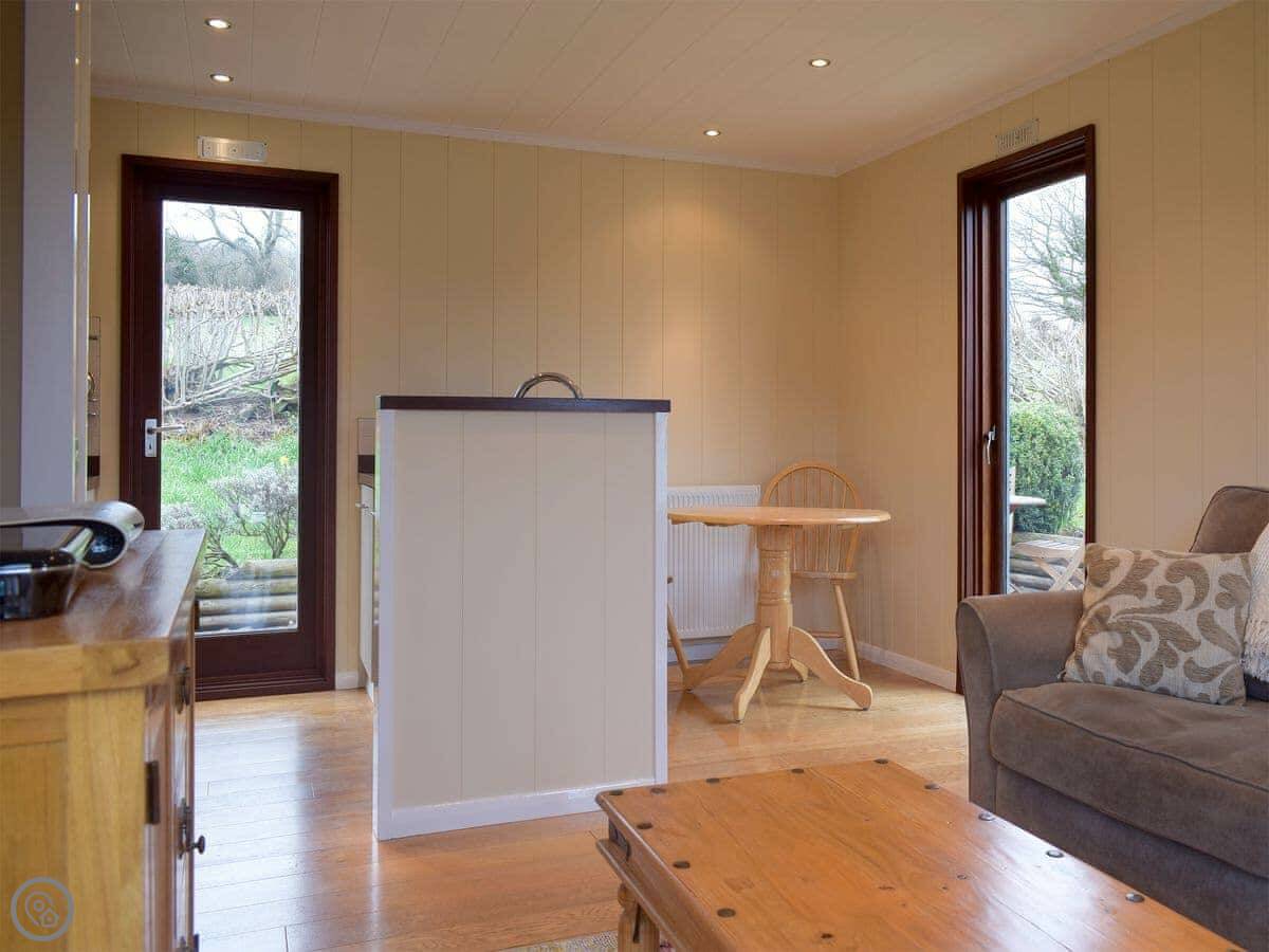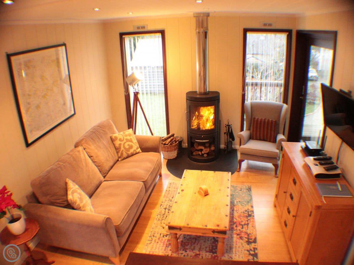 It sleeps four. Two bedrooms, one bathroom. It's got a 4 Star rating. There's a woodburner for colder nights. The living space is all open plan.