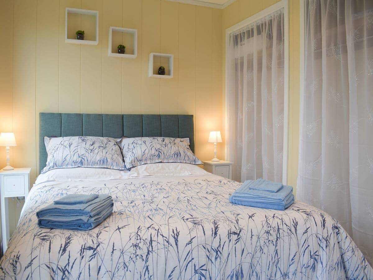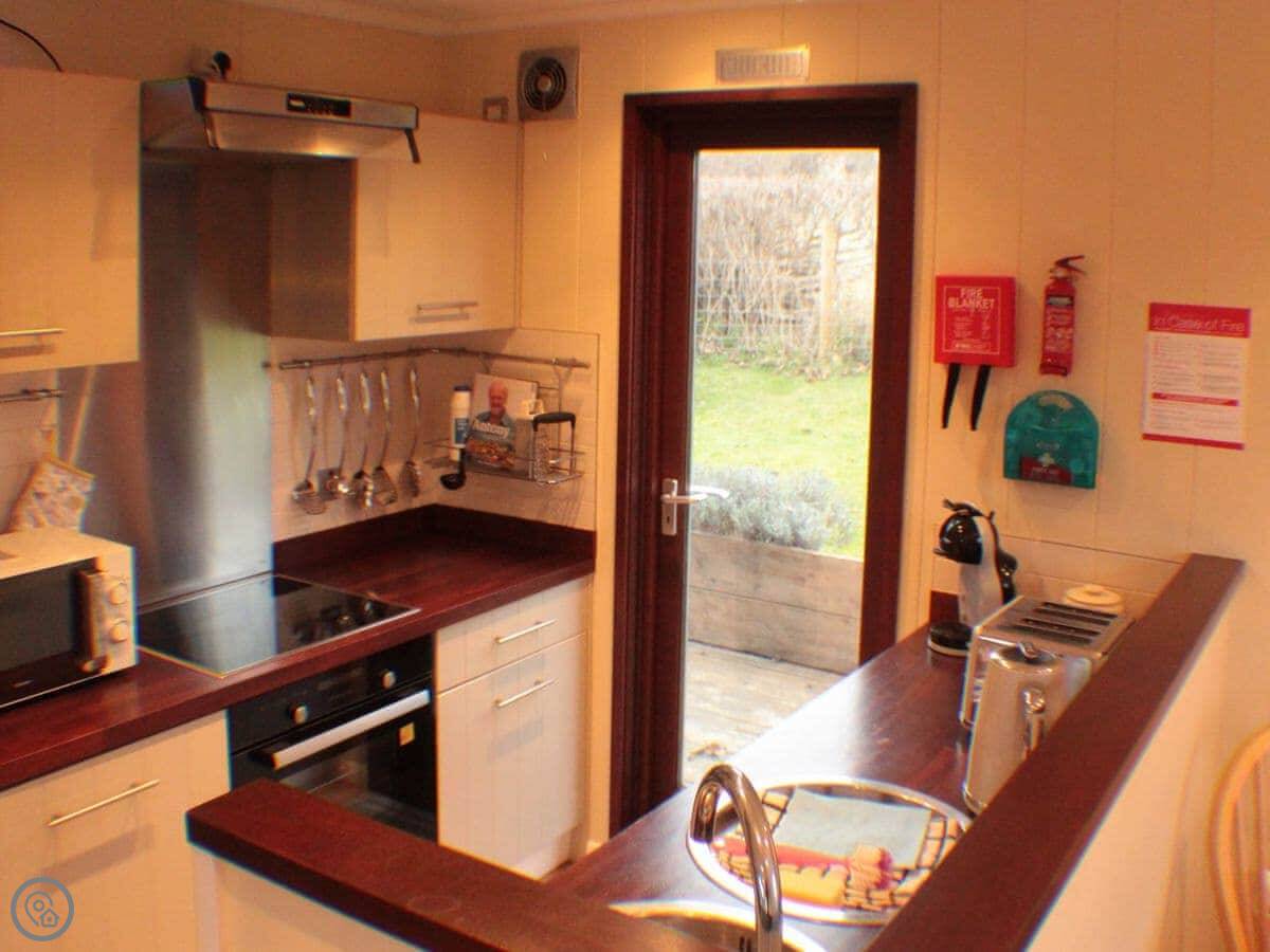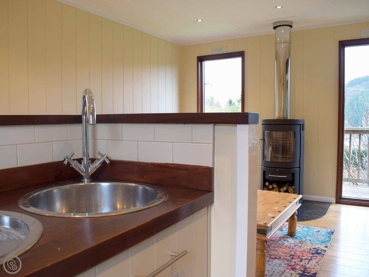 It sleeps four. Two bedrooms, one bathroom. It's got a 4 Star rating. There's a woodburner for colder nights. The living space is all open plan.
