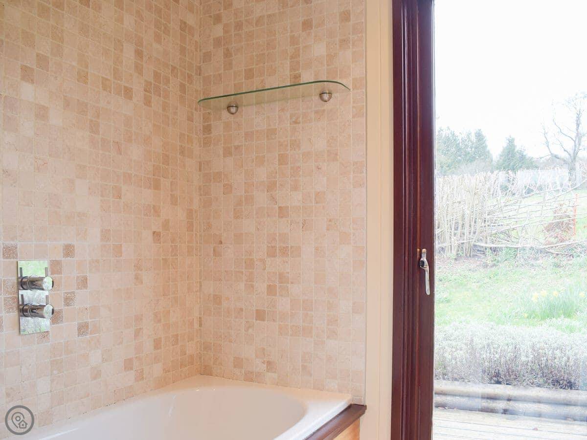 The Wooden Lodge is near Upper Lye, in Herefordshire. It's a detached cabin. I live next door, but you get the garden to yourselves. It's enclosed and has a deck with a BBQ.
