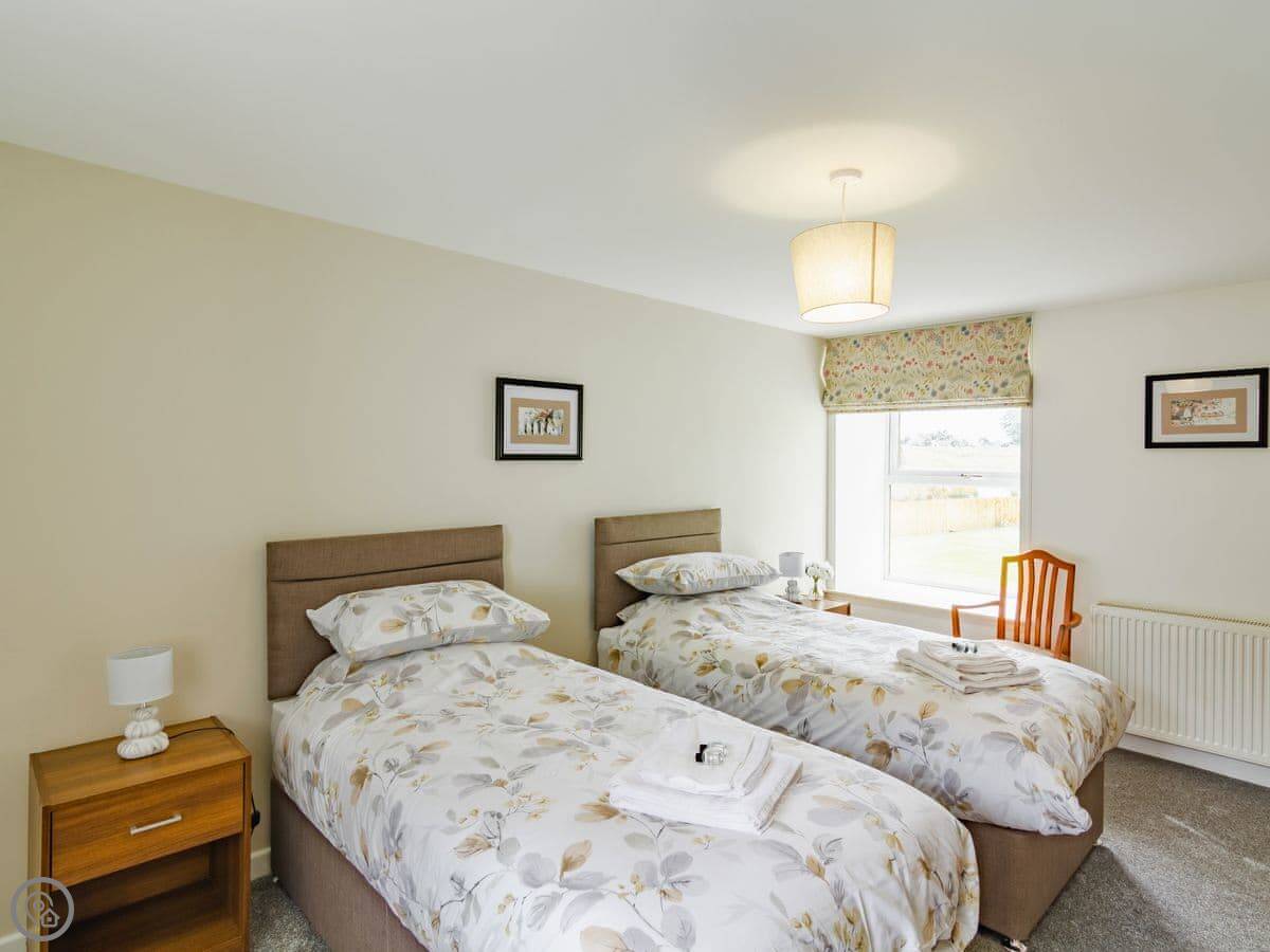 The garden is enclosed, which is good if you're bringing dogs. There's a hot tub out there. The view looks over a duck pond and fields towards the hills. You'll see deer.