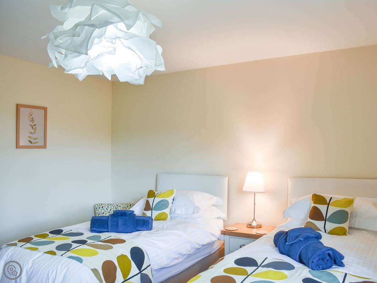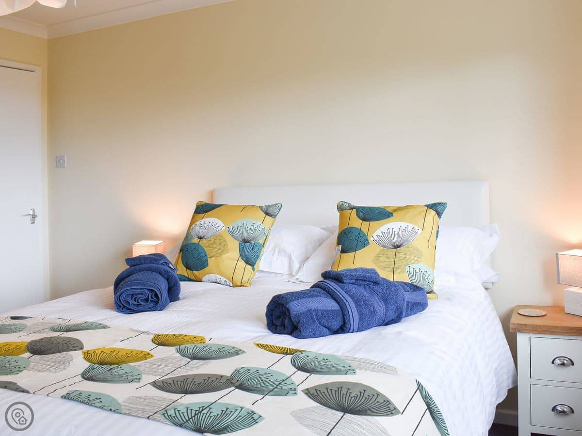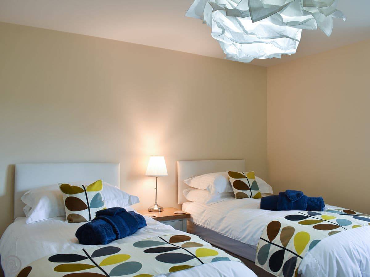 It sleeps four. Two bedrooms, one bathroom. One king size bed, two singles. It’s a 4 Star rating, so everything’s there and it’s comfortable, but it’s not huge. The kitchen is compact but it has what you need.