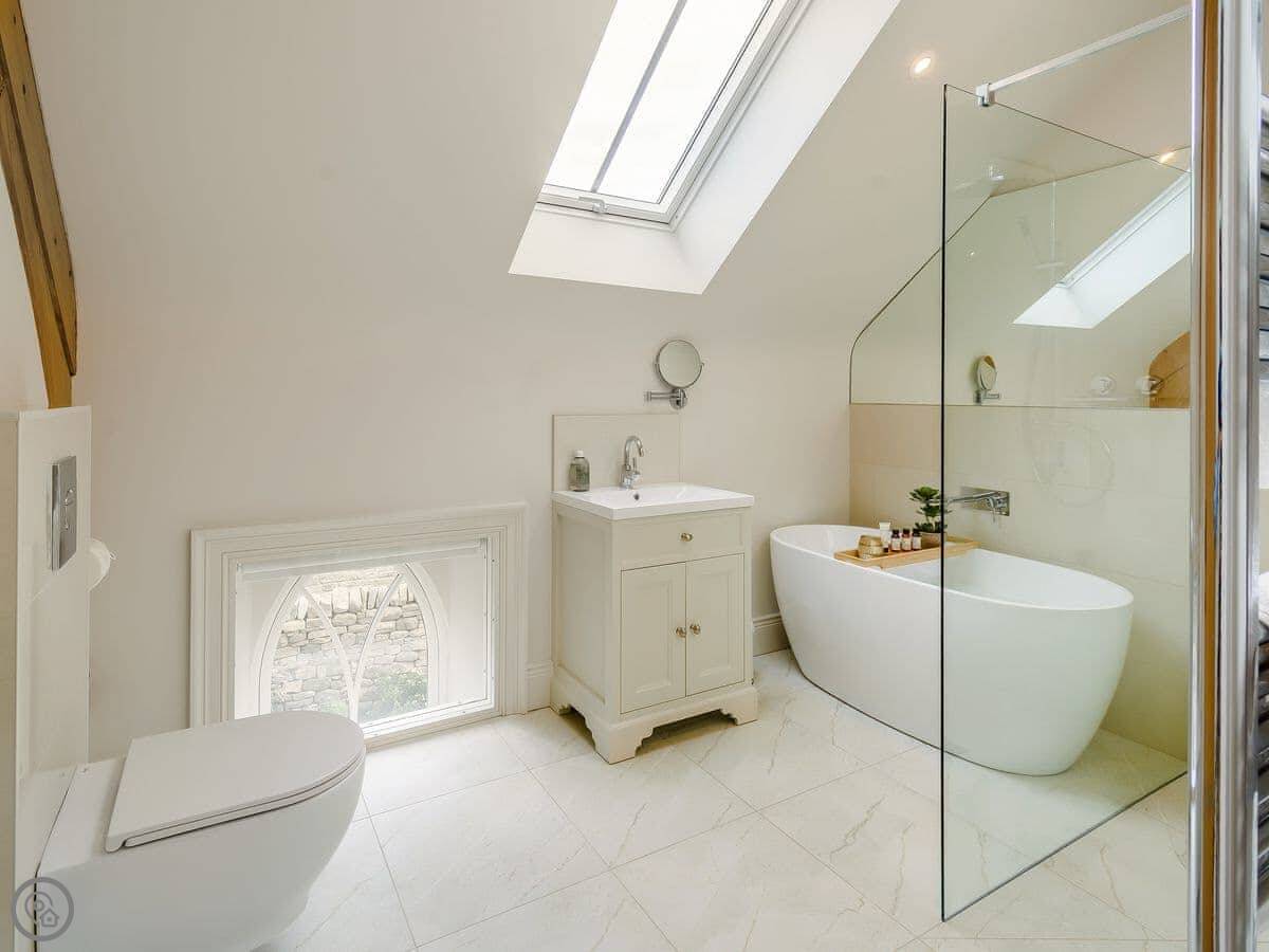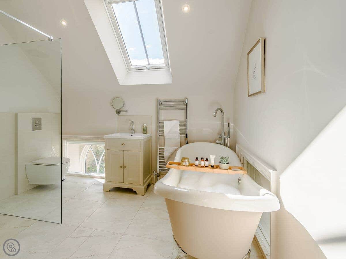 Upstairs, there are three more bedrooms. The beds are big, six foot wide. One of the en-suites has a roll top bath. There’s also a small snug room up there if someone wants to sit quietly.