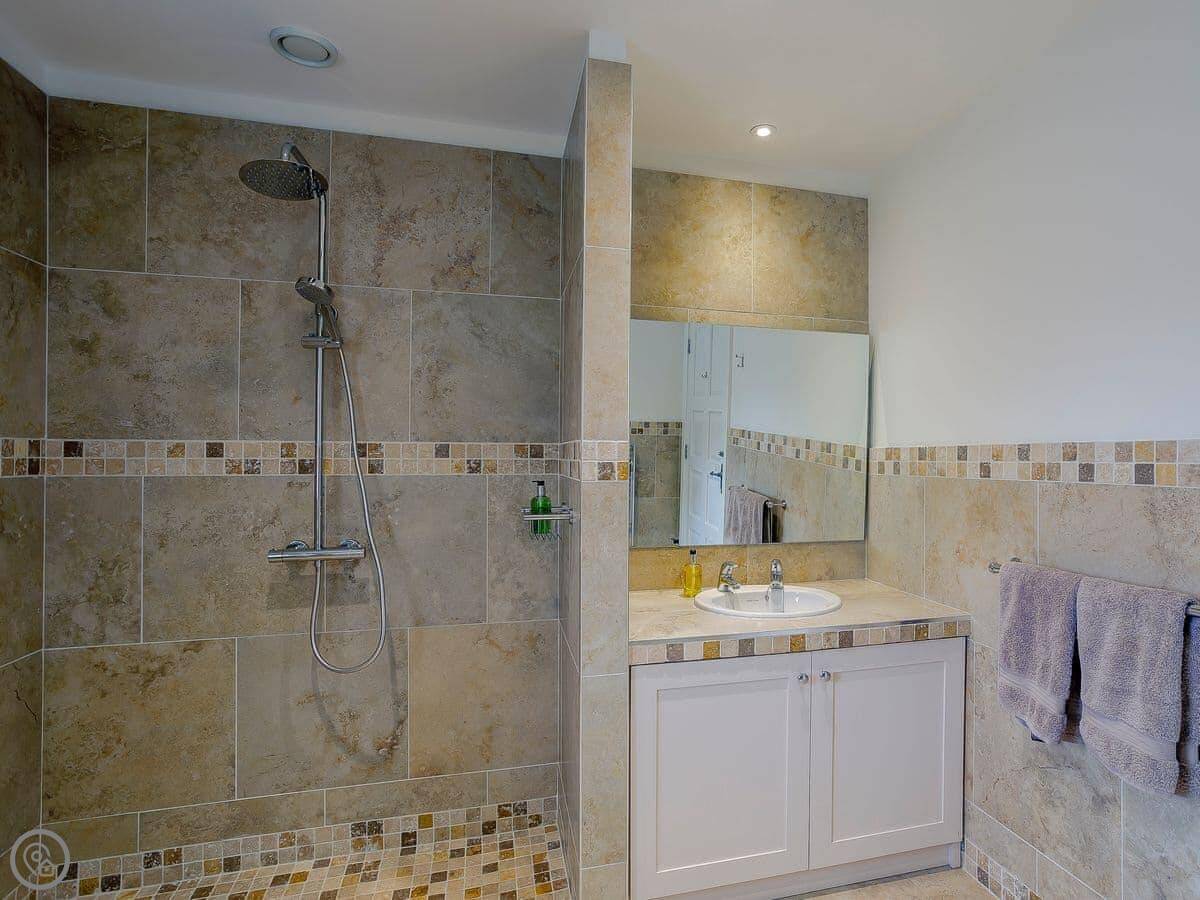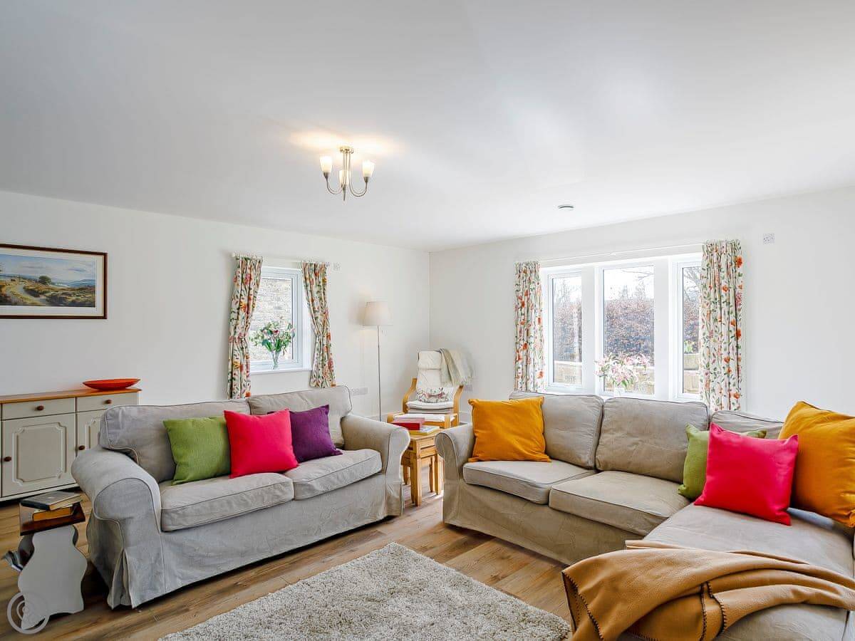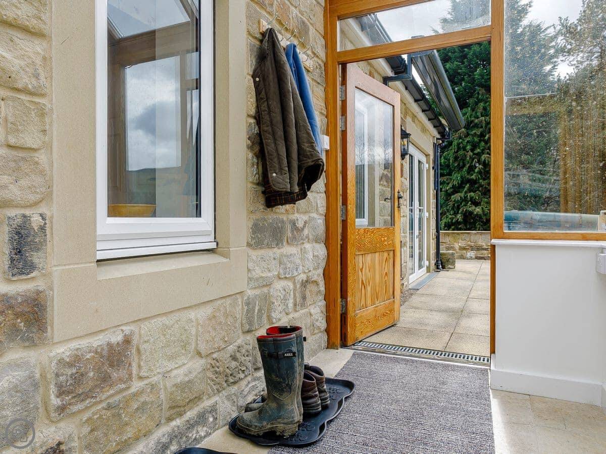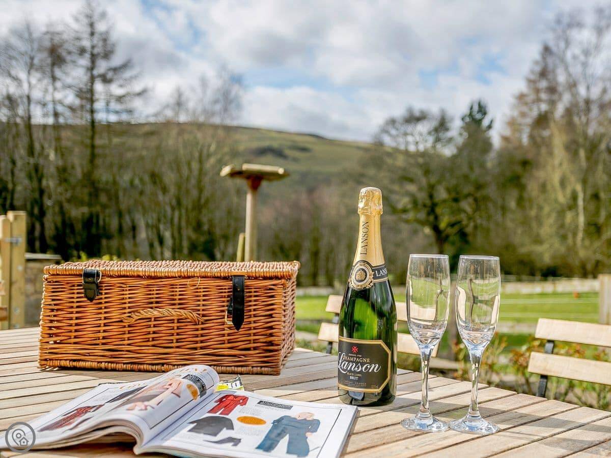 You get a private patio that's enclosed, good if you've got a dog or kids. There's parking right outside. The views are over our fields and the valley.
