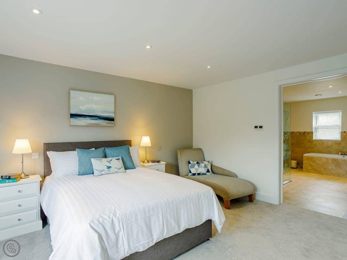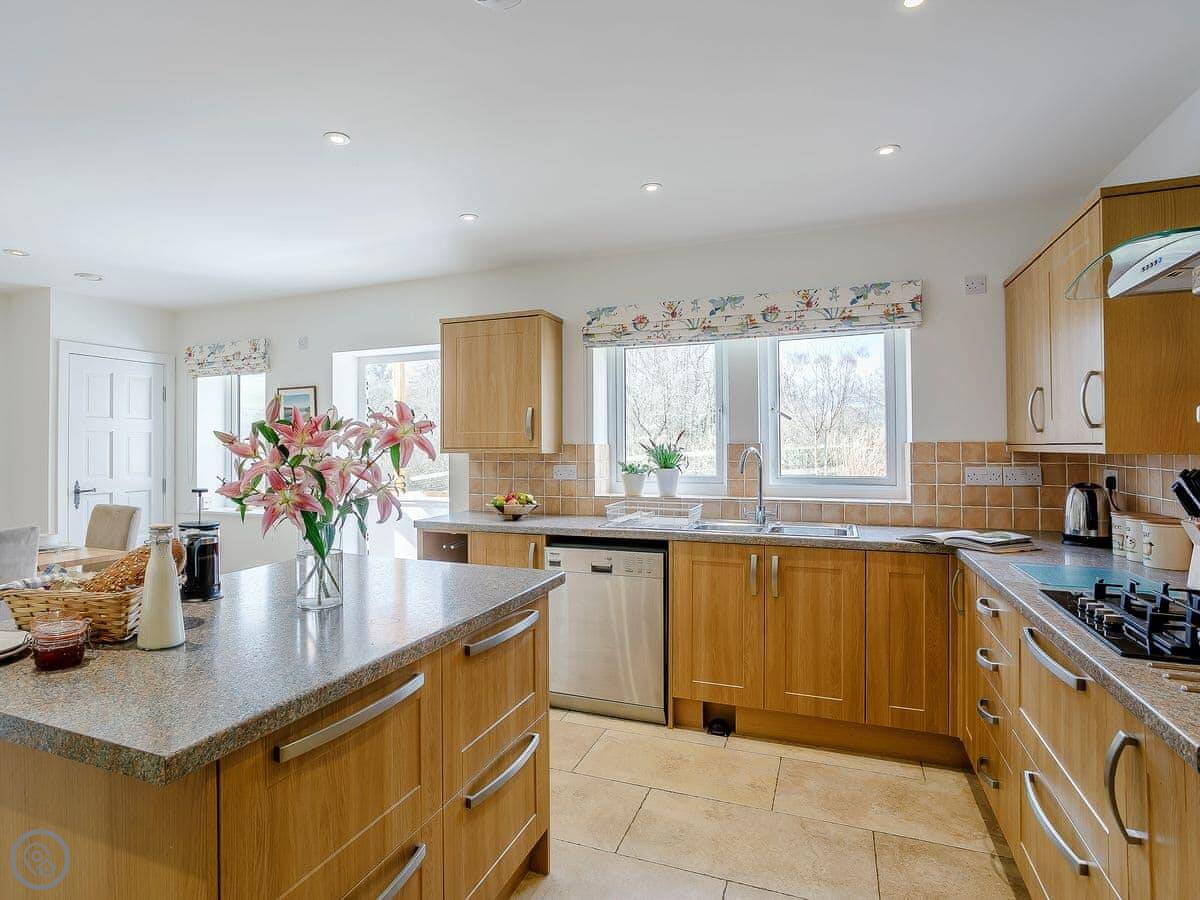 It's got underfloor heating, a wood burner, WiFi, a washing machine, and a dishwasher. Bedding and towels are included. You can bring one well-behaved dog.