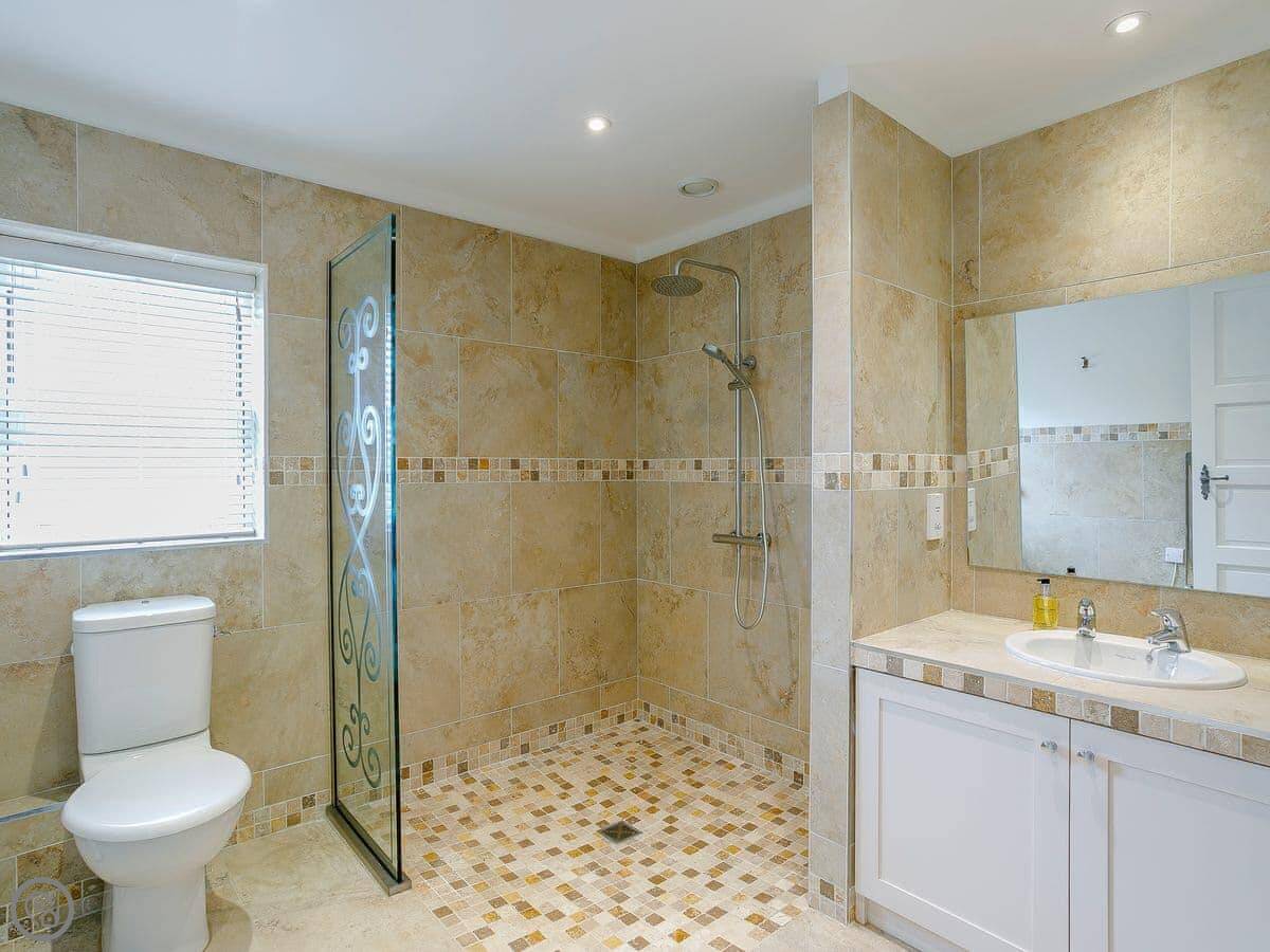 It sleeps six. Three bedrooms, three bathrooms. Two of the bedrooms have their own shower rooms. We had the whole place redone a few years ago, so it's all fresh. It gets a good amount of sun.