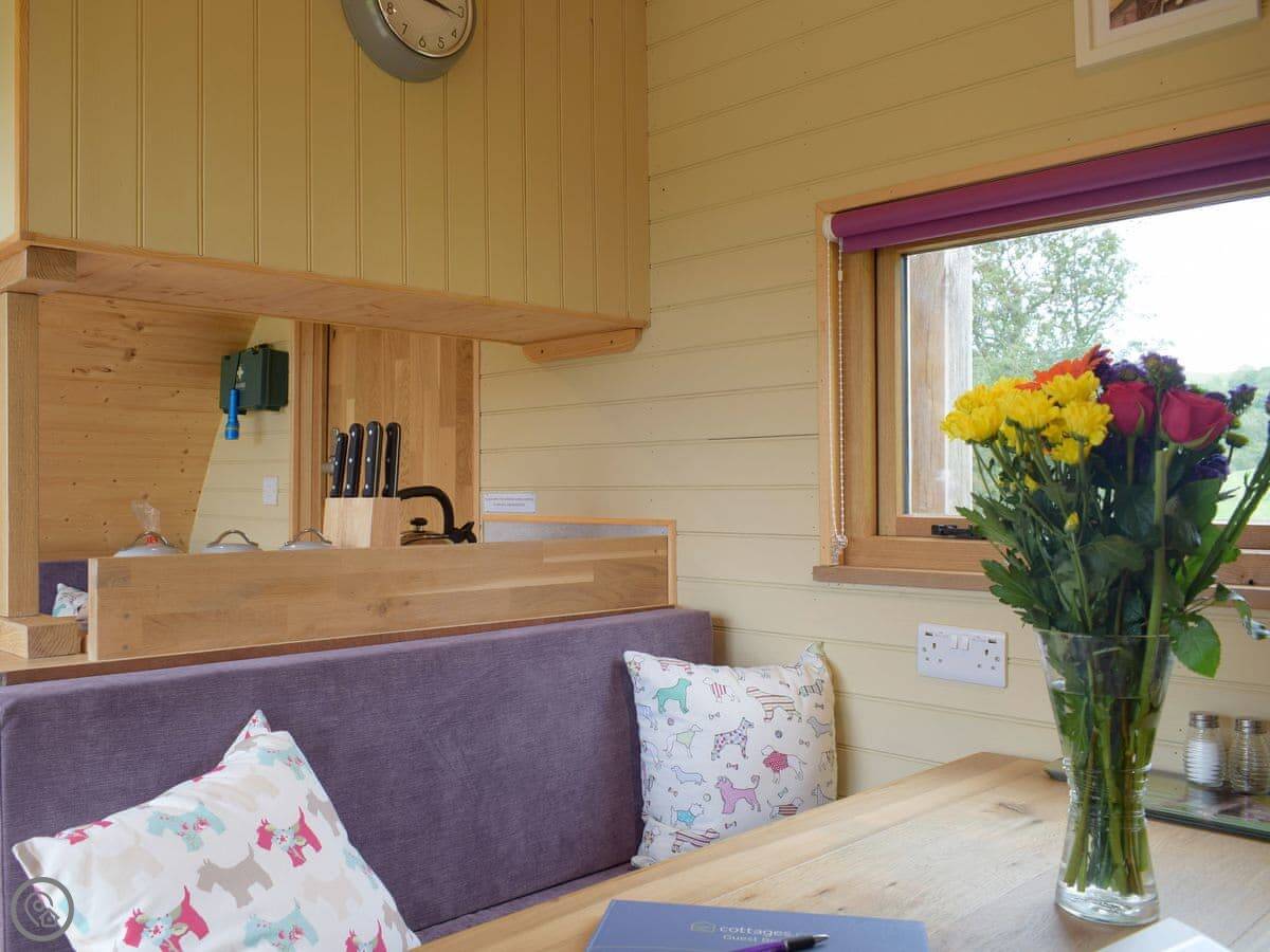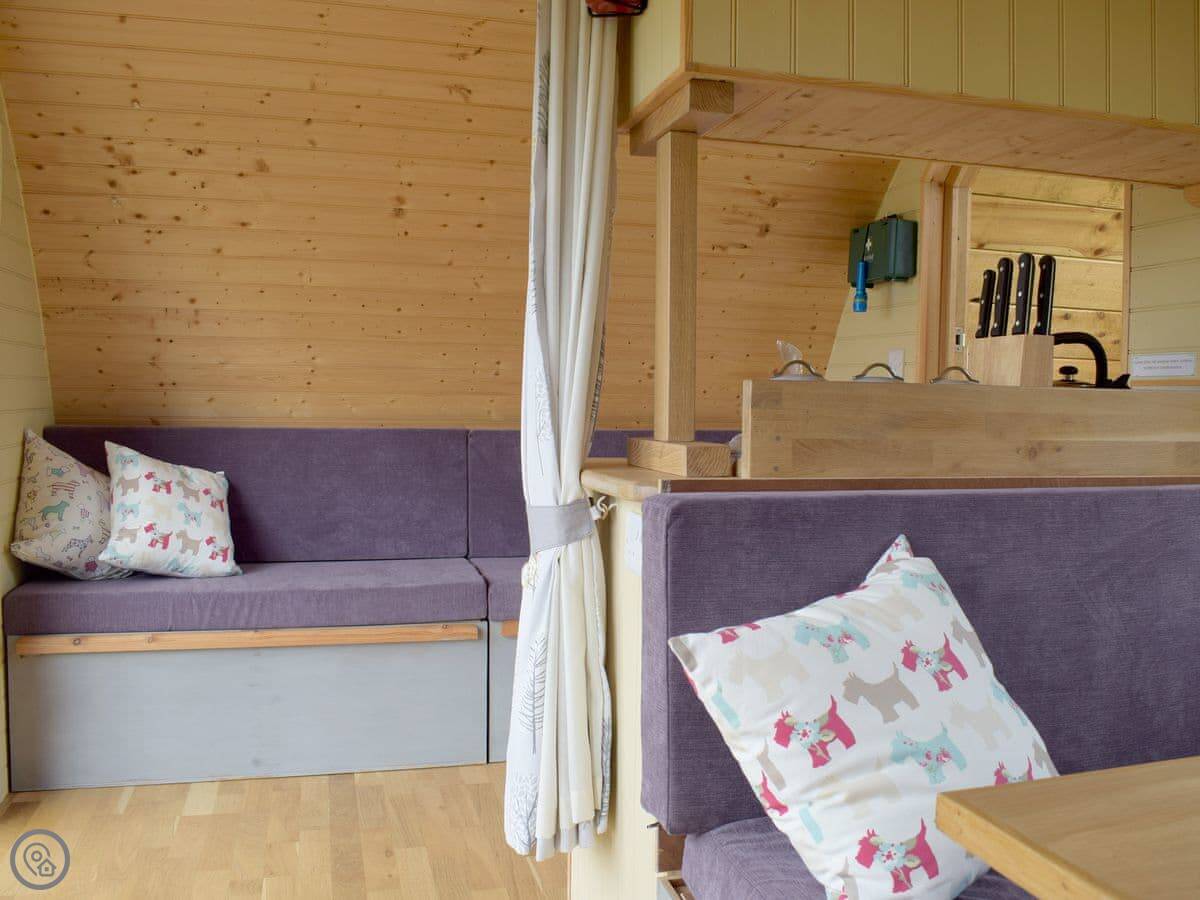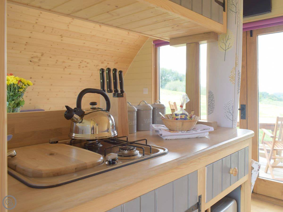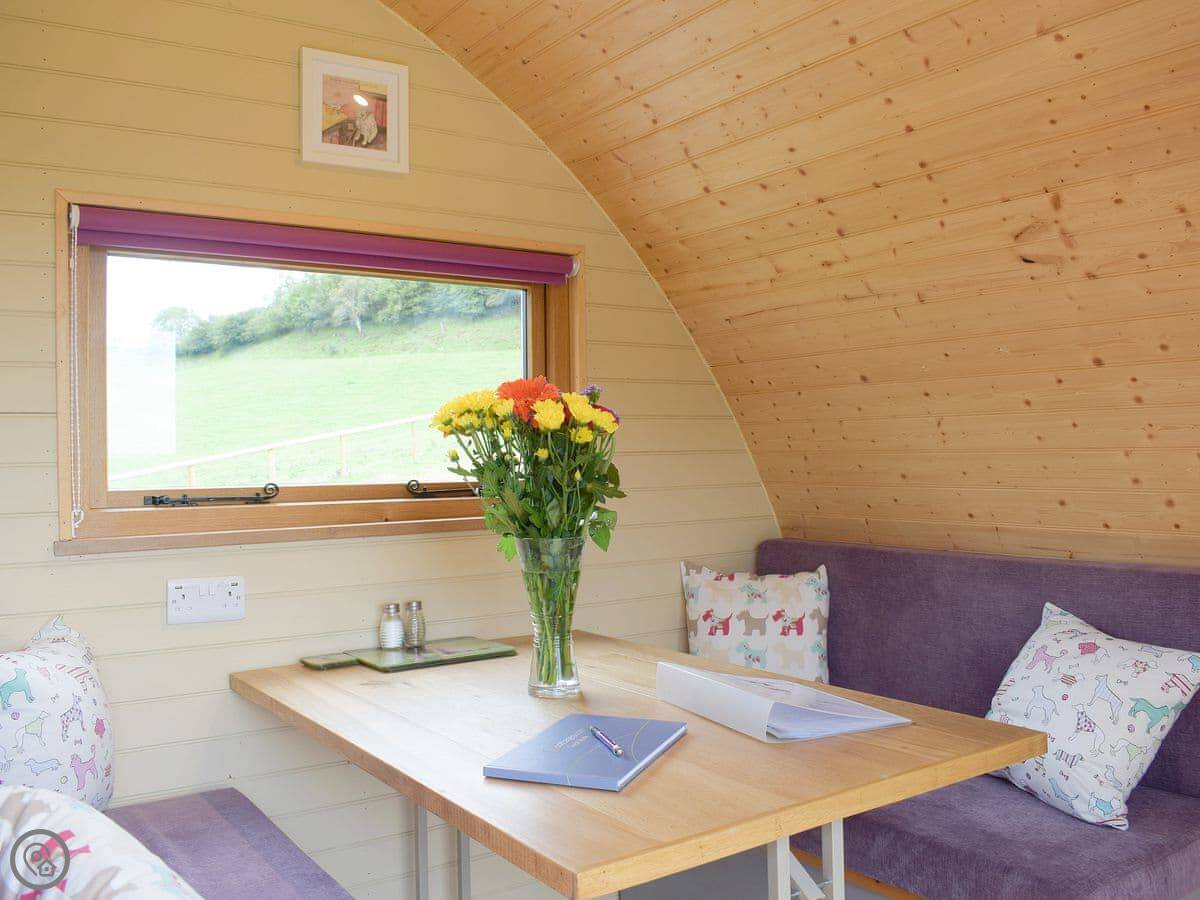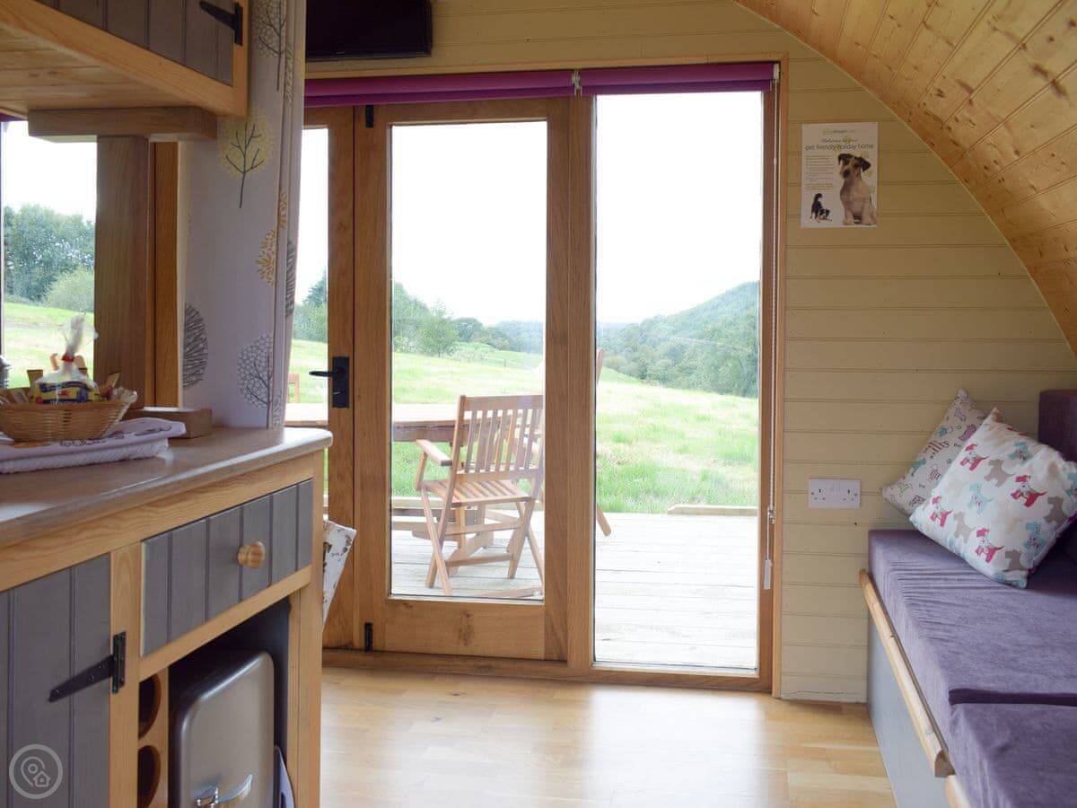 Wellan is a pod sat in the heart of the Powys countryside on the owners’ working farm, with great views over the open countryside and the stream running past the property. The pod is all open plan and the seating area converts into two double beds. The pod has a private shower room which is located approx 30 yards from the property. There are patio doors leading to a decked area which overlooks the countryside, a perfect place for enjoying the evening sun whilst sipping something cool. Horse riding is available on site. This is a great place for those wanting to explore the area, whether it be on foot or bicycle. Radnor Forest and the Elan Valley are both nearby and offer spectacular views, and routes that can be walked or cycled. The owners have a horse riding school which is a short walk from the pods, where guests can book lessons. There is also the pet sheep and shetland ponies for the children to see and feed. Shop, pub and restaurant 4 miles.