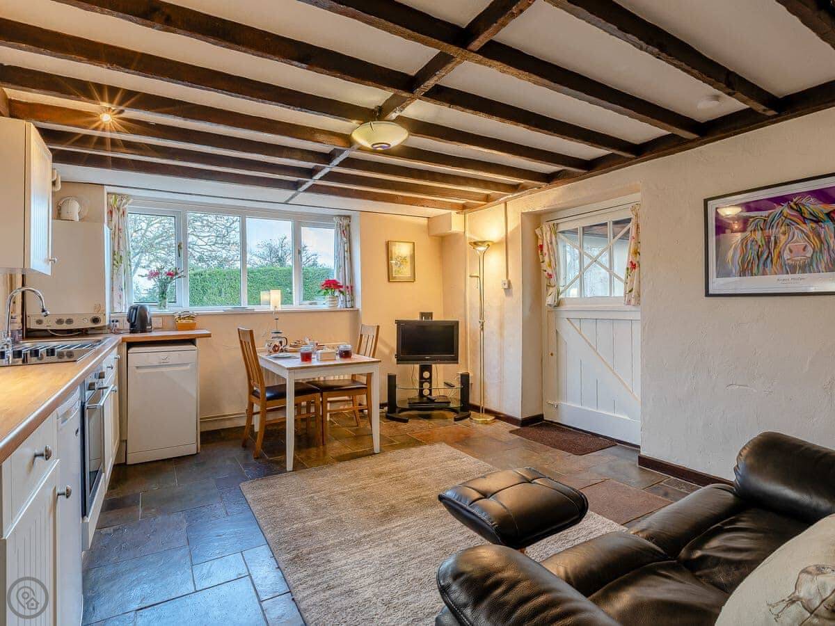Orchard Cottage is in Thorney, in Somerset. It's one of these old farm worker's cottages on a lane, part of a small group. The rating is 4 Star, so it's comfortable and well looked after. It sleeps two people, just the one bedroom and one bathroom. Good for a couple. We take two dogs.