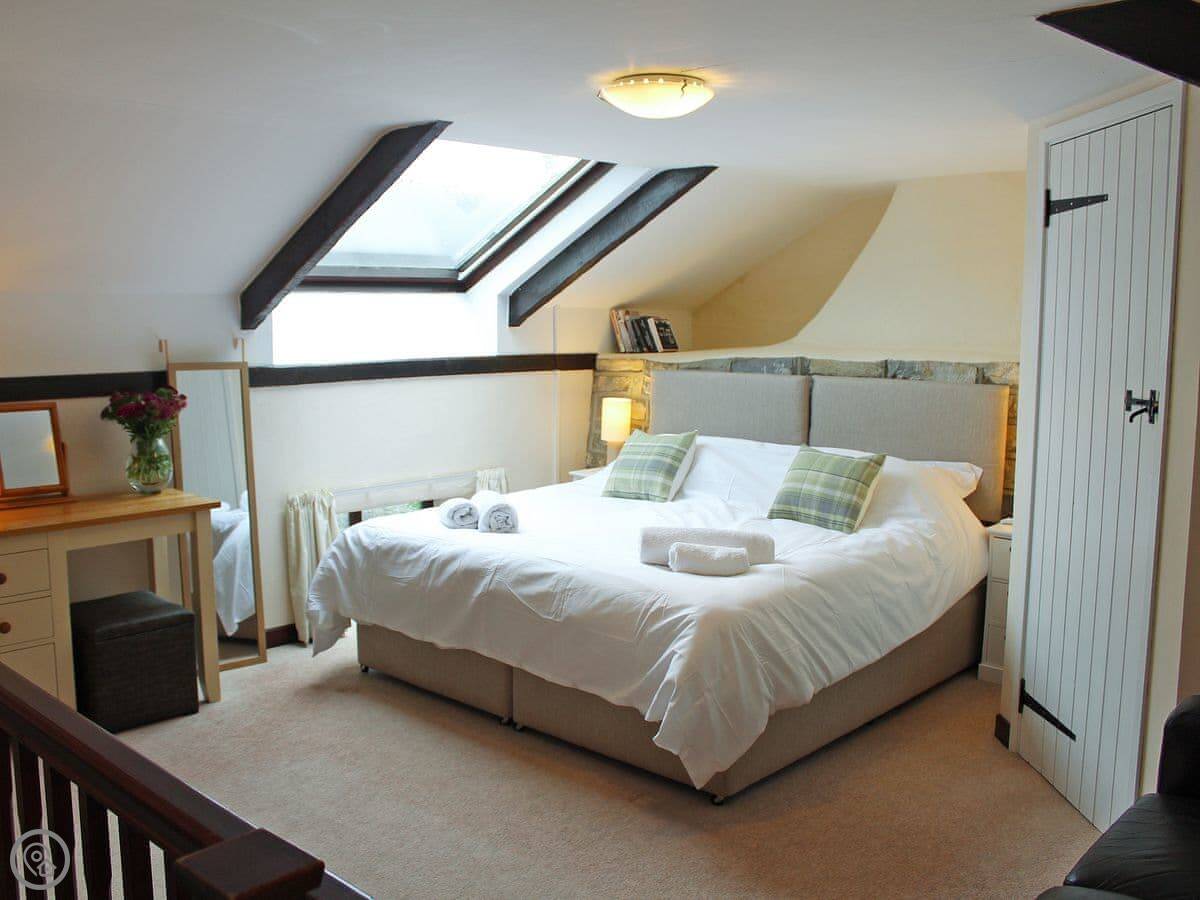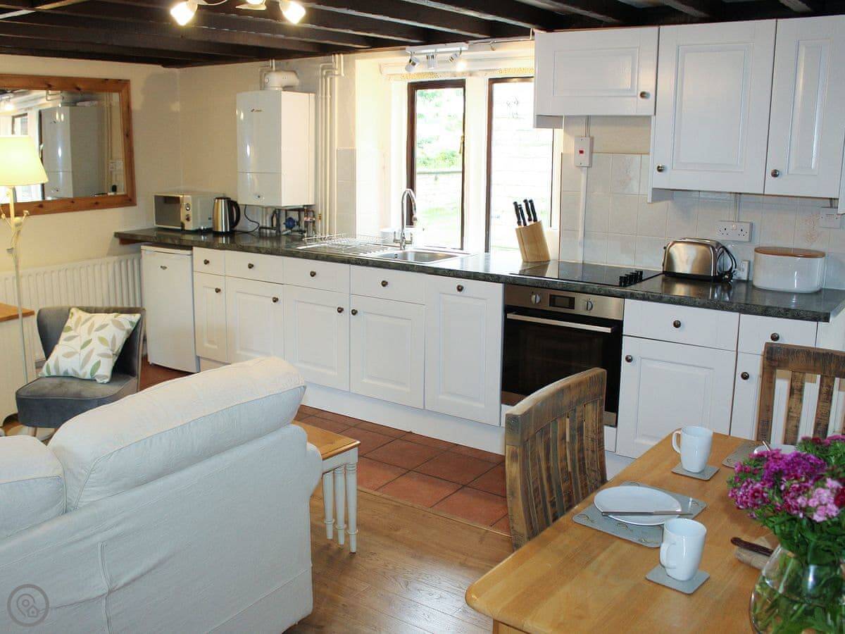 It's a one bedroom place, sleeps two. Got a four star rating. It's all on one level which is handy. The main room is open plan, kitchen, living area, all together. Patio doors lead out to a private, enclosed garden. It's not huge, but it's yours and it's fenced in. Good if you're bringing a dog.