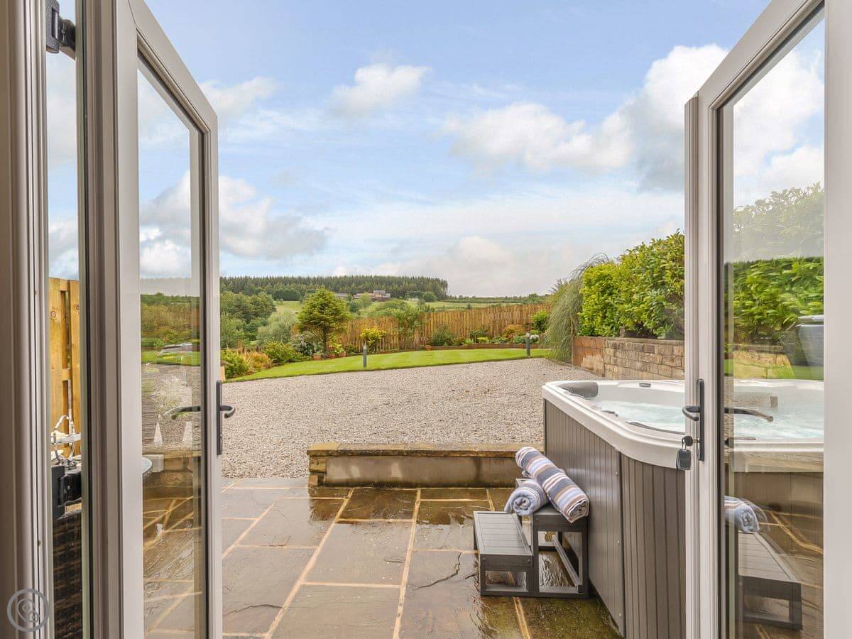 This gorgeously presented semi-detached cottage is an ideal choice for a romantic break away, or for close friends to unwind together. Take in the wide stretch of fields rolling out towards the forests and watch the sky light up with stars at night, one of the many benefits of being in such a rural location. What could be better than enjoying these views from your own private hot tub. Simply soak in the bubbles and relax. You can see why this is so popular with honeymooners, as well as couples celebrating special birthdays and anniversaries. Once inside you will discover a luxurious and welcoming interior, designed to provide you with the most comfortable, memorable stay. The owners aim to delight you with a lovingly created welcome gift including home baked treats, wine and a selection of local produce including fresh eggs from Hens. Stretch out on the sofa and make yourself at home, you are sure to feel cosy with the underfloor heating. The kitchen has been fitted to a high standard with a range of contemporary appliances, so you can cook up a lovely romantic meal to be enjoyed at the breakfast bar. Retire to the spacious king size bedroom for a restful night’s sleep, ready to wake refreshed for a day of exploration. The en-suite shower room is modern and sleek. Back outside, the patio area has a seating area beside the bubbling hot tub for al fresco dining or simply admiring the scenery.