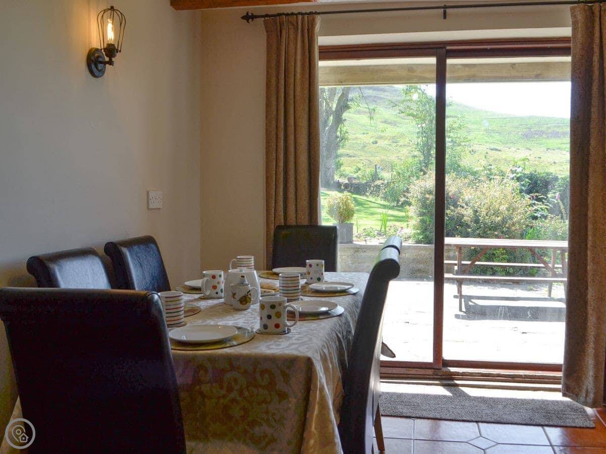 This fabulous semi-detached farmhouse is comfortably furnished and is situated on the owner’s working farm in the beautiful countryside of Glamorgan. The living room has within it an original spiral staircase and is south facing with magnificent views of the surrounding mountains and hills. The dining room has patio doors leading onto a traditional, south-facing, Welsh stone flagged patio with beautiful views. The master bedroom is north facing and has breathtaking views over farmland and the valley below, the second bedroom is south facing, whilst the third is apex-style with beams.