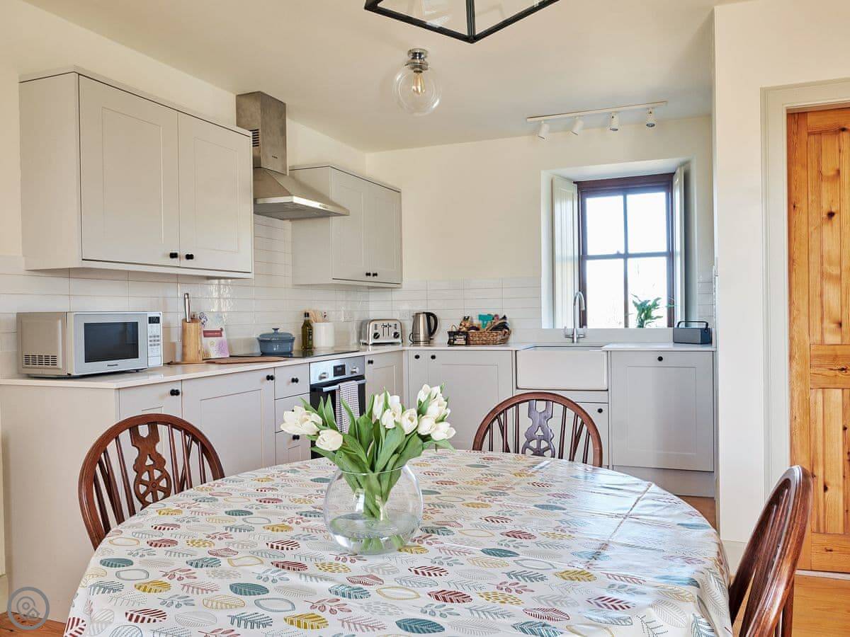 The living room has a wood burner. Up on the gallery, there's a big TV with a PlayStation, and a table football table. There's also a selection of games and some outdoor gear you can borrow.