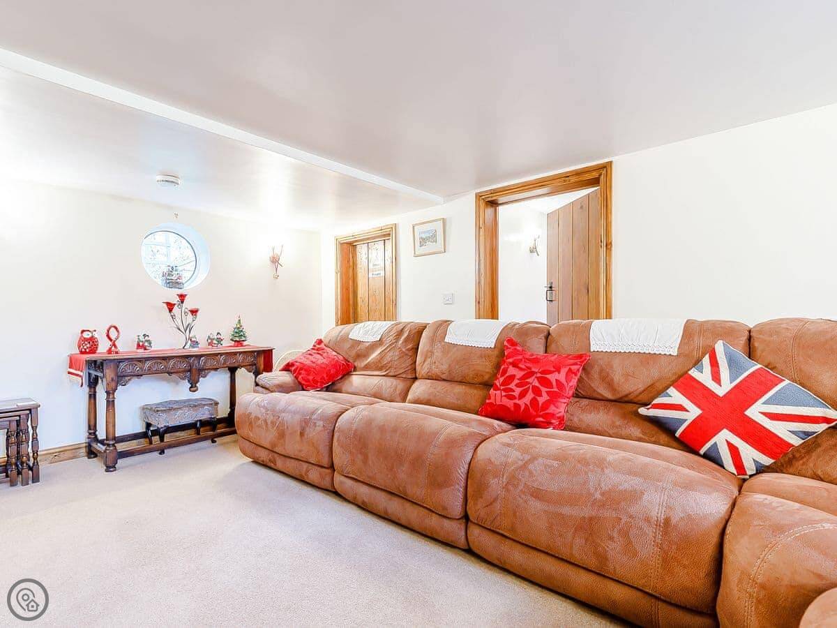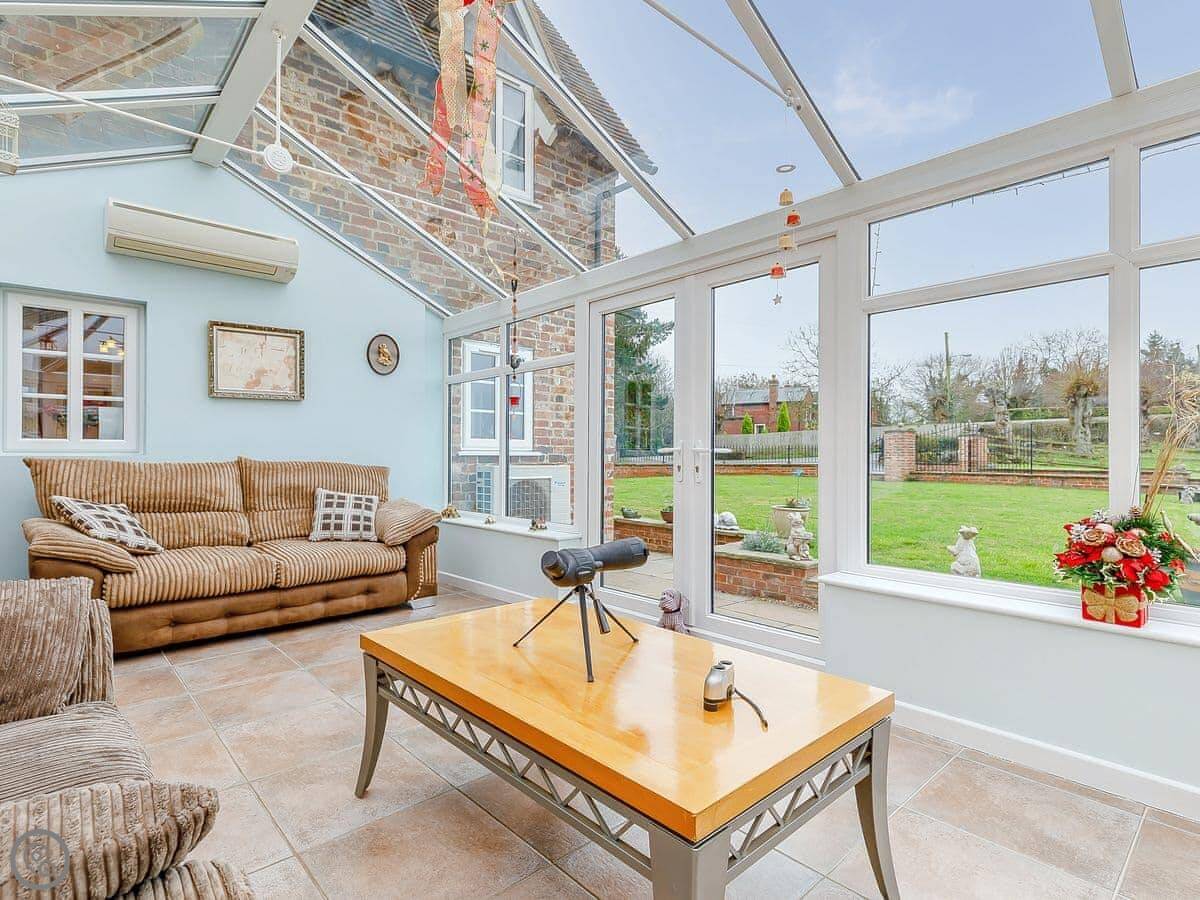 There's a lot of space inside. Two separate living rooms, so if some want to watch telly and others want to read, it works. The kitchen is large and open plan with the dining area. There's a wood burner between the kitchen and one of the living rooms.