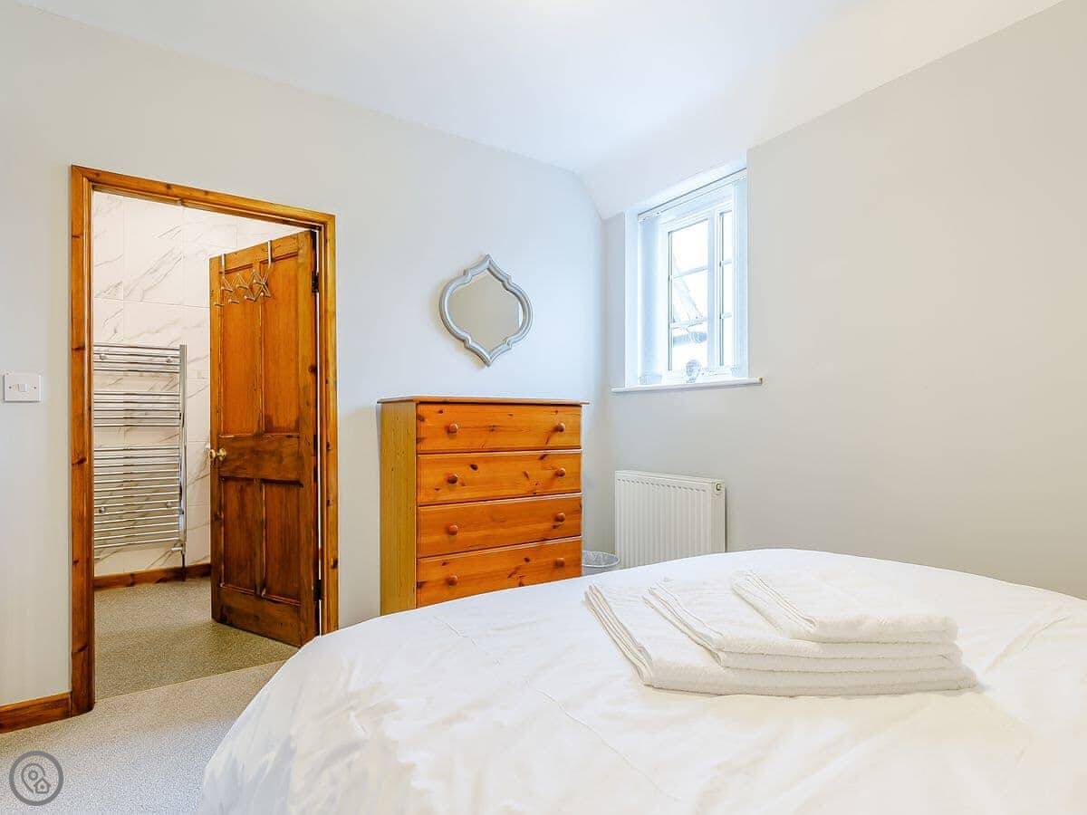 Practical stuff: it's pet friendly, up to two dogs. There's parking on site. All bedding and towels are included. It has wifi, a TV, a washing machine, and a dishwasher.