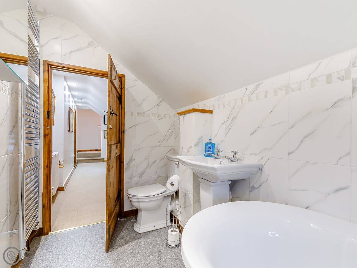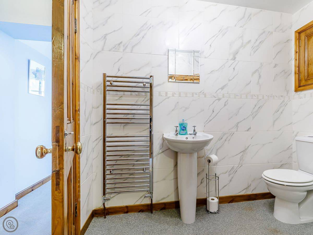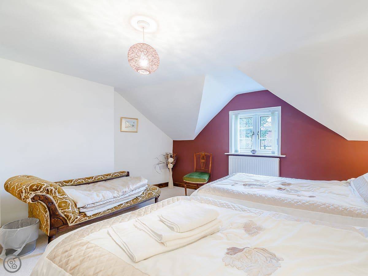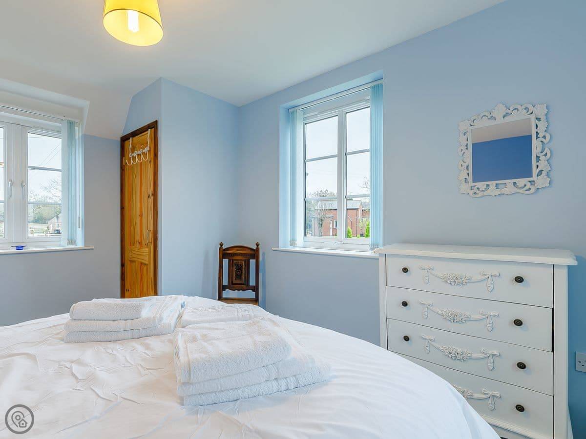 It sleeps eight. Four bedrooms, two bathrooms. Two of the bedrooms share a bathroom between them. It's got a 4 Star rating, so it's done up well. The ground floor is wheelchair friendly. The entrance and the main living area are on one level.