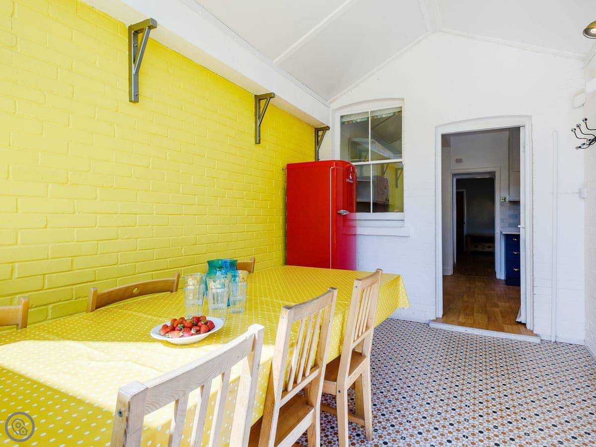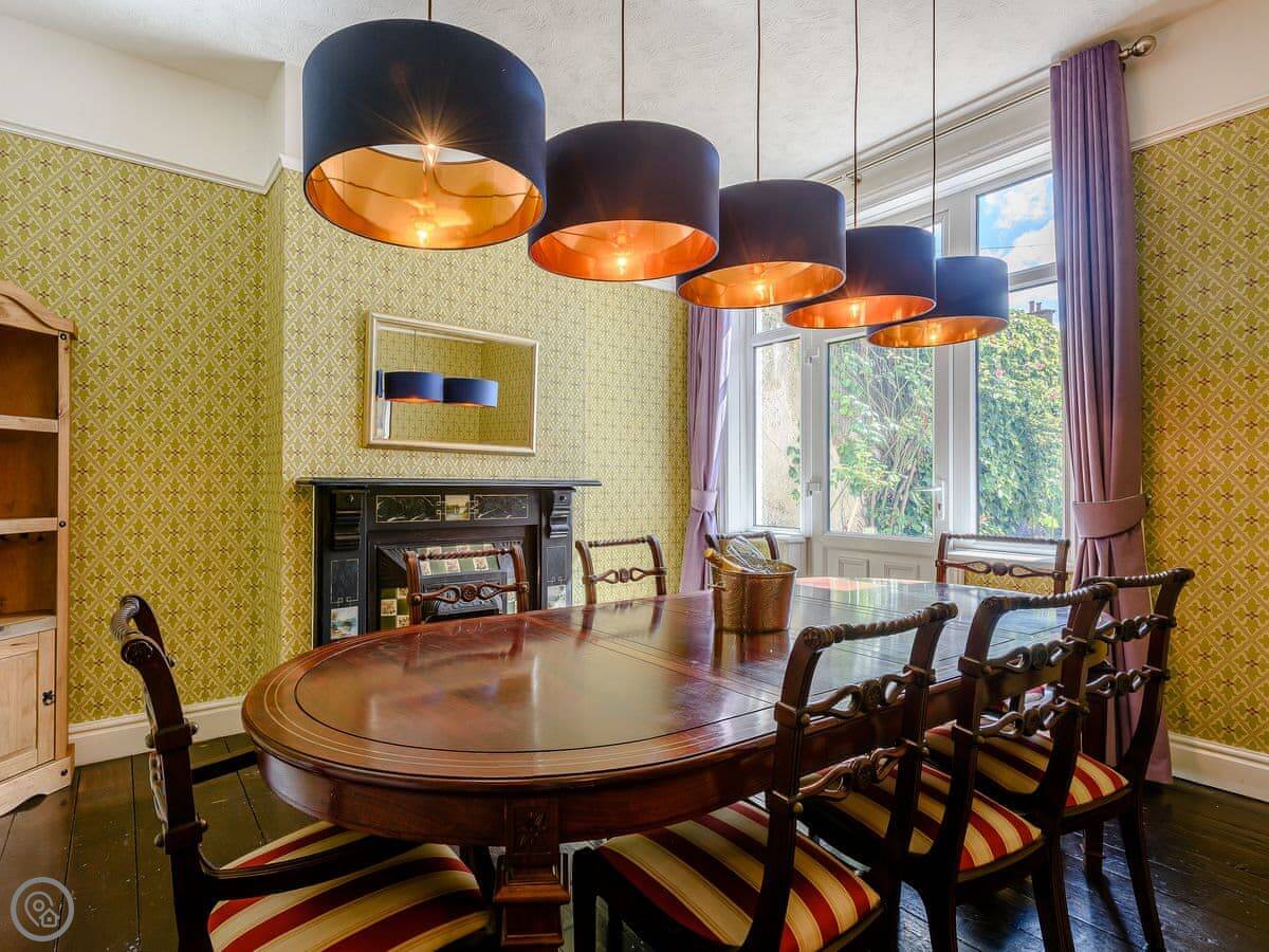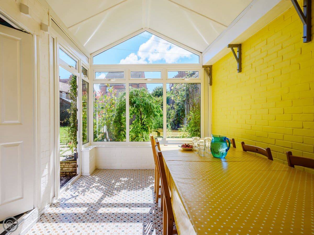You've got two places to eat. There's a formal dining room and a conservatory. The kitchen is a good size for cooking for a crowd. There's a washing machine, dishwasher, and TV. WiFi is included. Bedding and towels are provided. There's a cot and a highchair if you need them. Parking is on site.