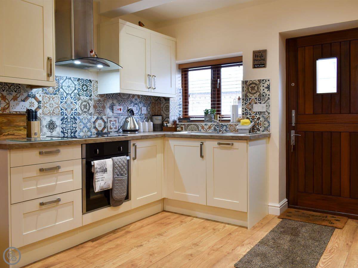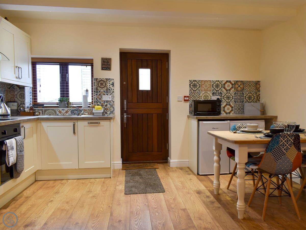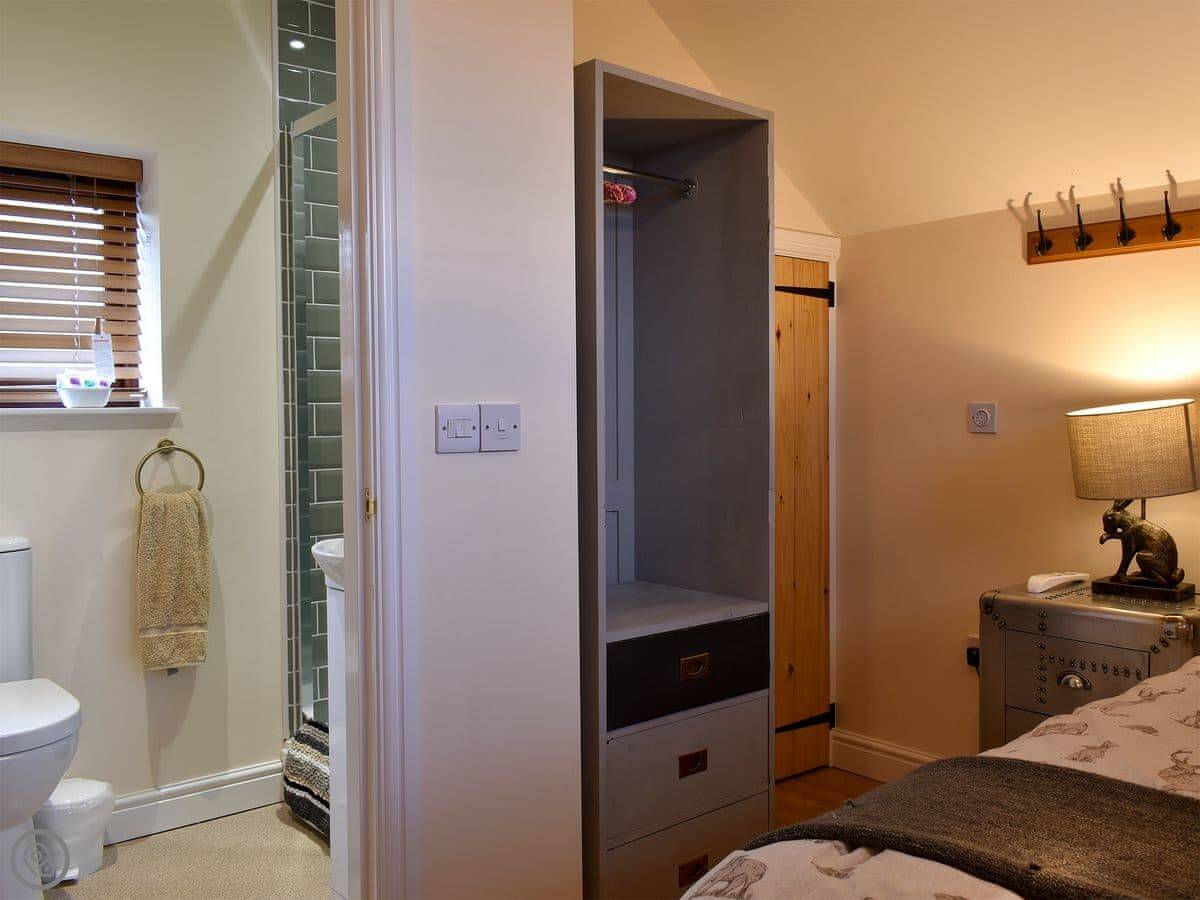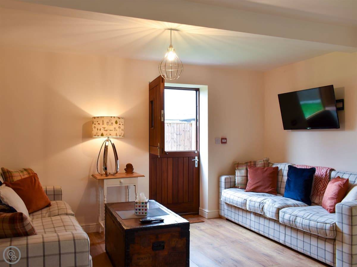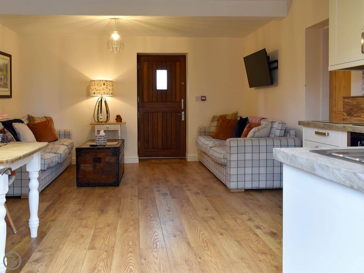 Sparrow is on our farm in Lower Drayton. It's one of two cottages converted from old farm buildings. Everything is on one level. It's all open plan inside, so it feels bright, especially with the big windows. There's underfloor heating throughout, so even in winter it's warm.