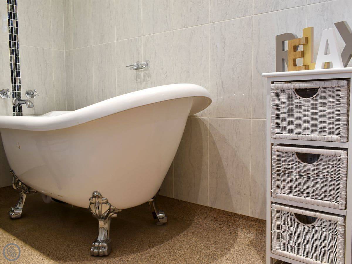 It sleeps four. Two bedrooms, both with their own bathrooms. One bathroom has a walk-in shower. The rating is 4 Star. It's clean and comfortable.