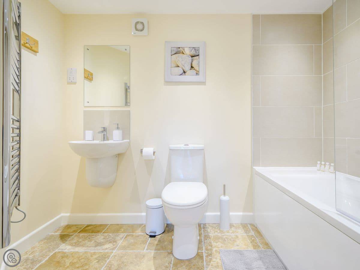 It sleeps four. Two bedrooms upstairs, one double and one twin. One bathroom downstairs. It's got a 4 Star rating. It was all done up a few years ago, so it's in good order. Underfloor heating downstairs, which works well.