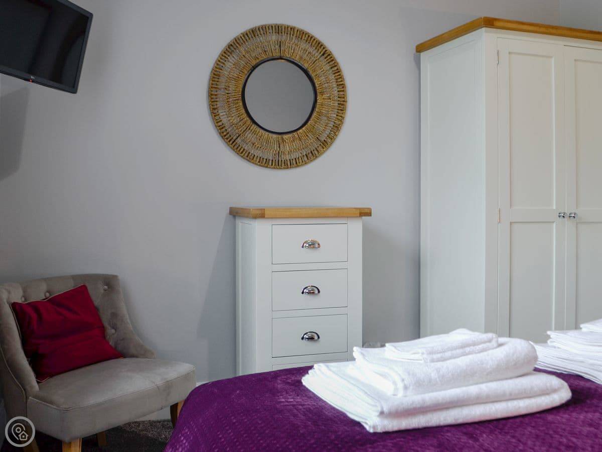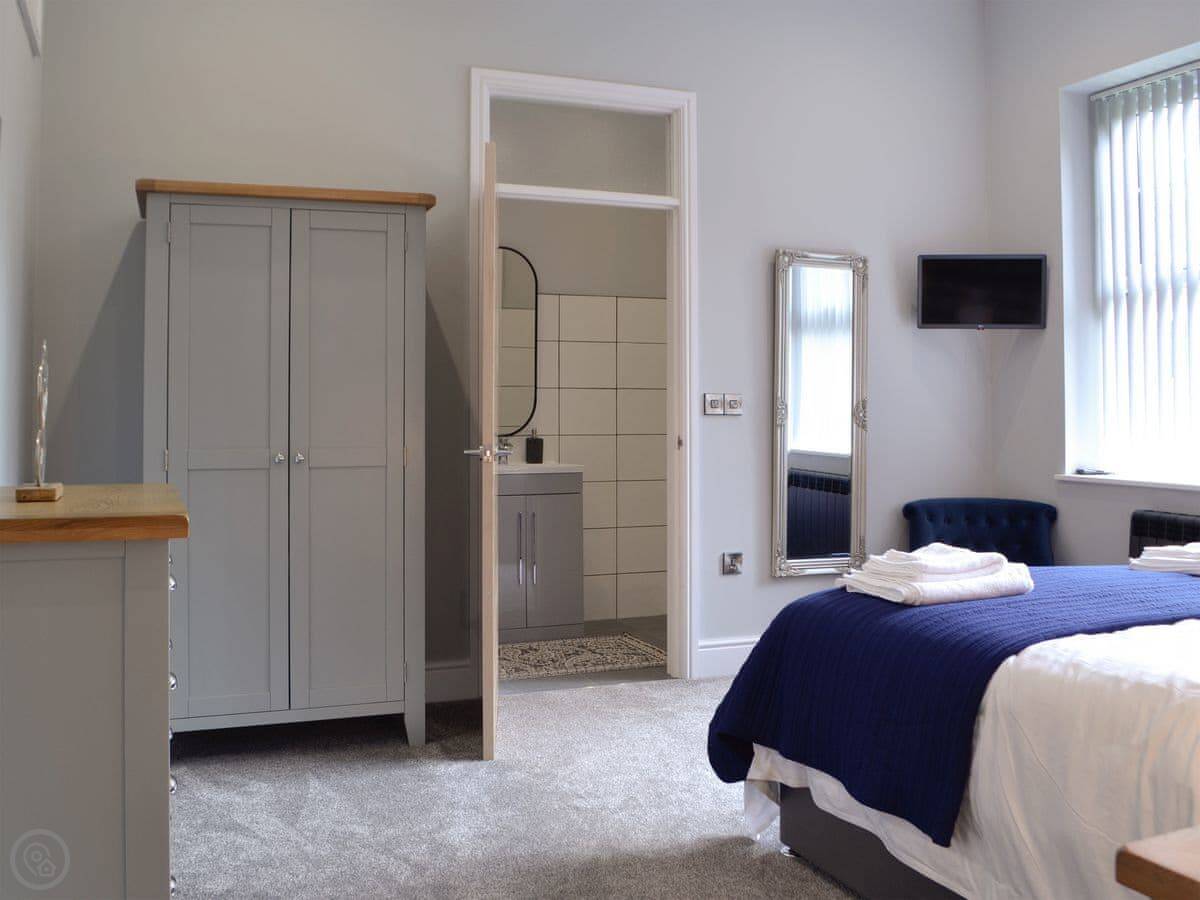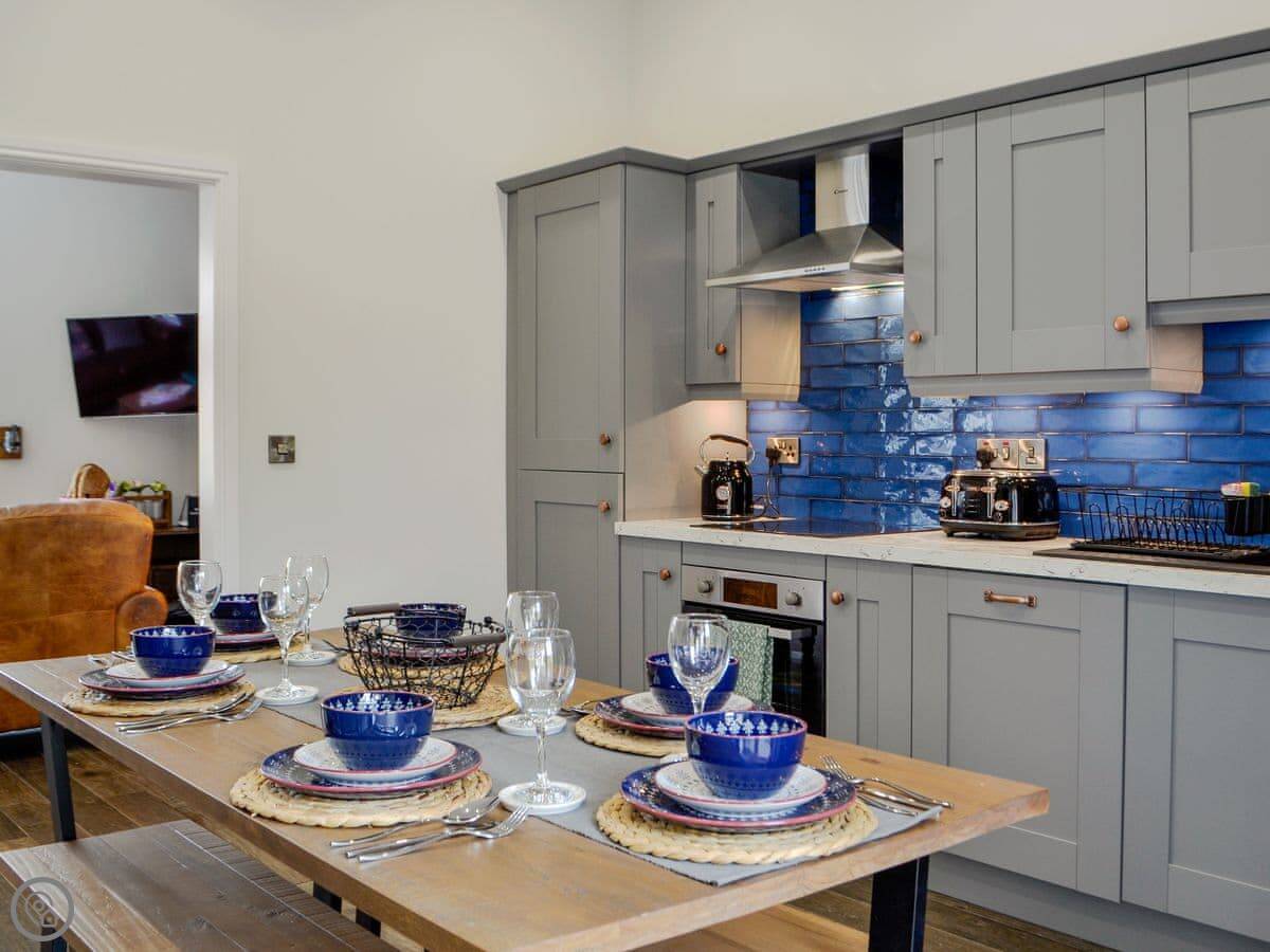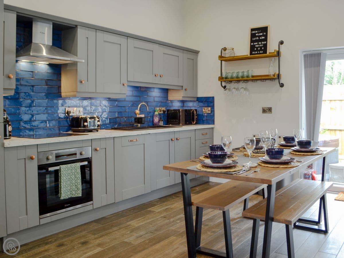 All on the ground floor, Llety’r Glöwr has a spacious living room with a wood burner and 50" TV, which leads to the kitchen/dining area, where there is everything you need to enjoy a self-catering holiday. There are three bedrooms, the master bedroom has a kingsize bed and en-suite facilities, the second bedroom has a double bed and the third bedroom has twin beds. All rooms have TV’s and are beautifully decorated. Outside, there is an enclosed garden with seating area and private parking for at least four cars.