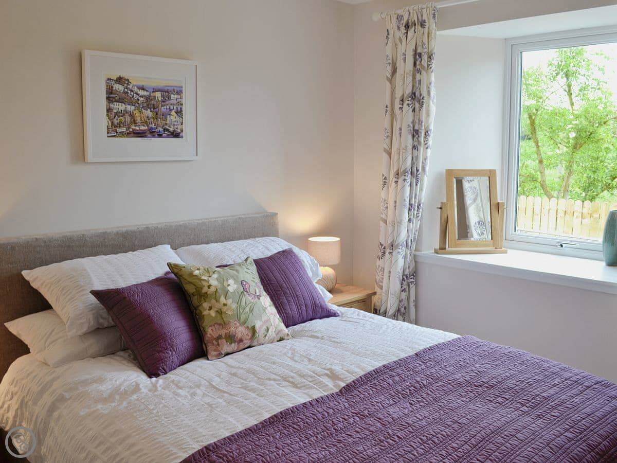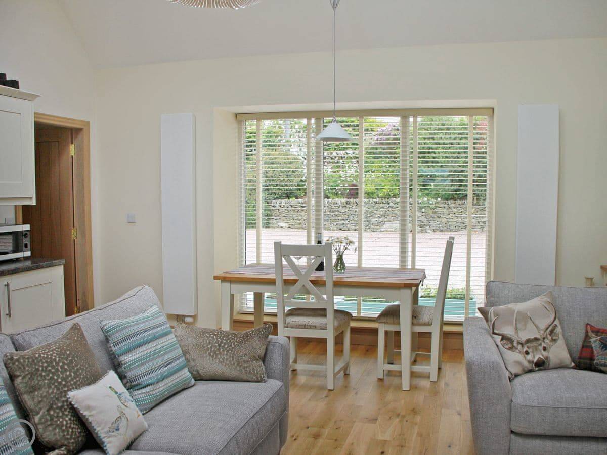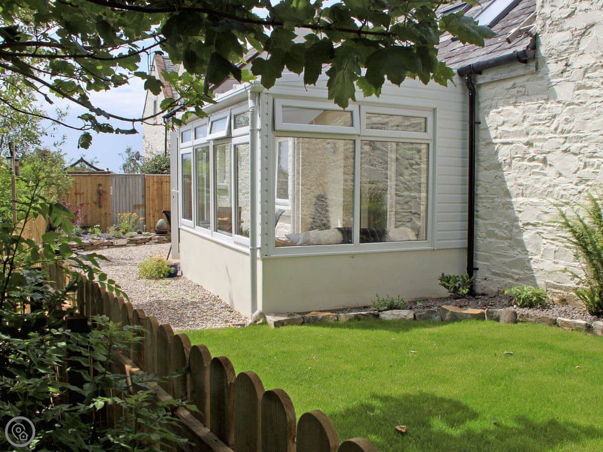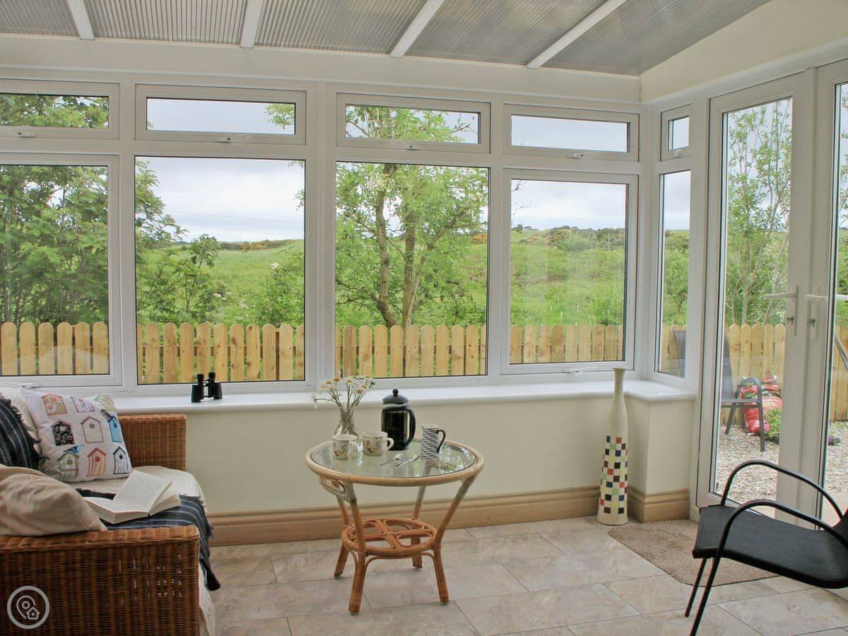 It's for two people. One bedroom, one bathroom, all on the ground floor. It's a five star, so it's comfortable and well-fitted. The main room has high ceilings and big doors out to a conservatory. The conservatory leads to your own enclosed garden.