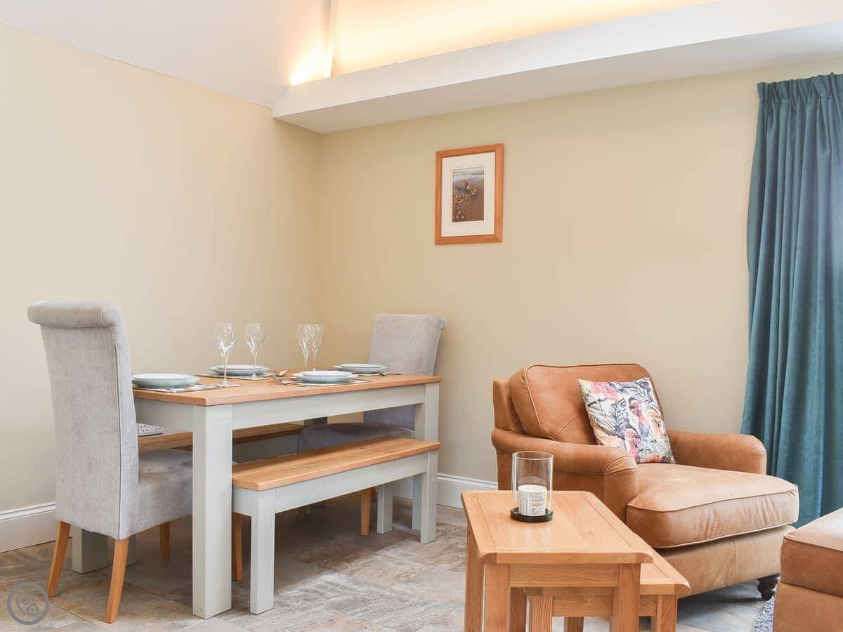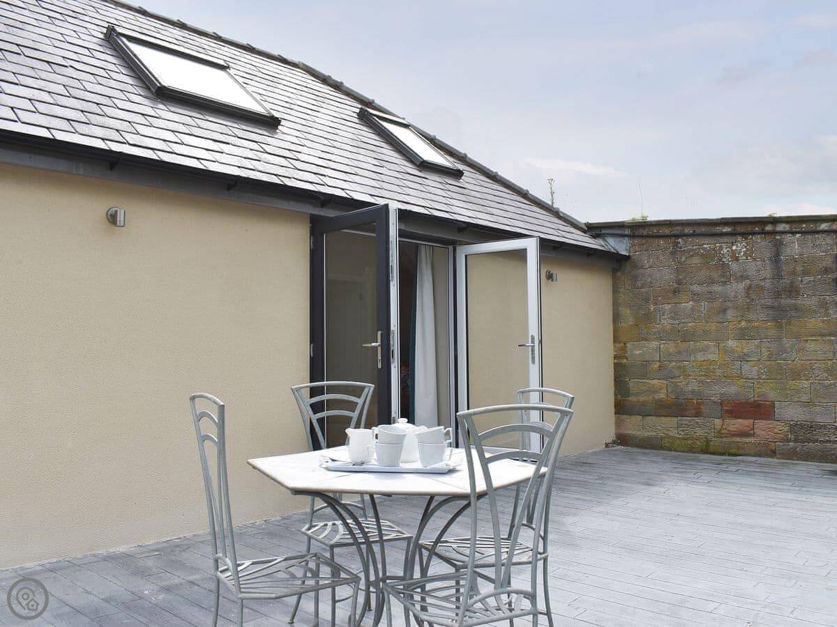 The Cottage at Stainsacre Hall is a one-bedroom place, just for two. It's detached, so it's nice and quiet. You get a little deck outside the back door with a table and chairs. The garden behind it is shared, but it's big and leads down into a private bit of woods. We've seen deer down there in the evening.