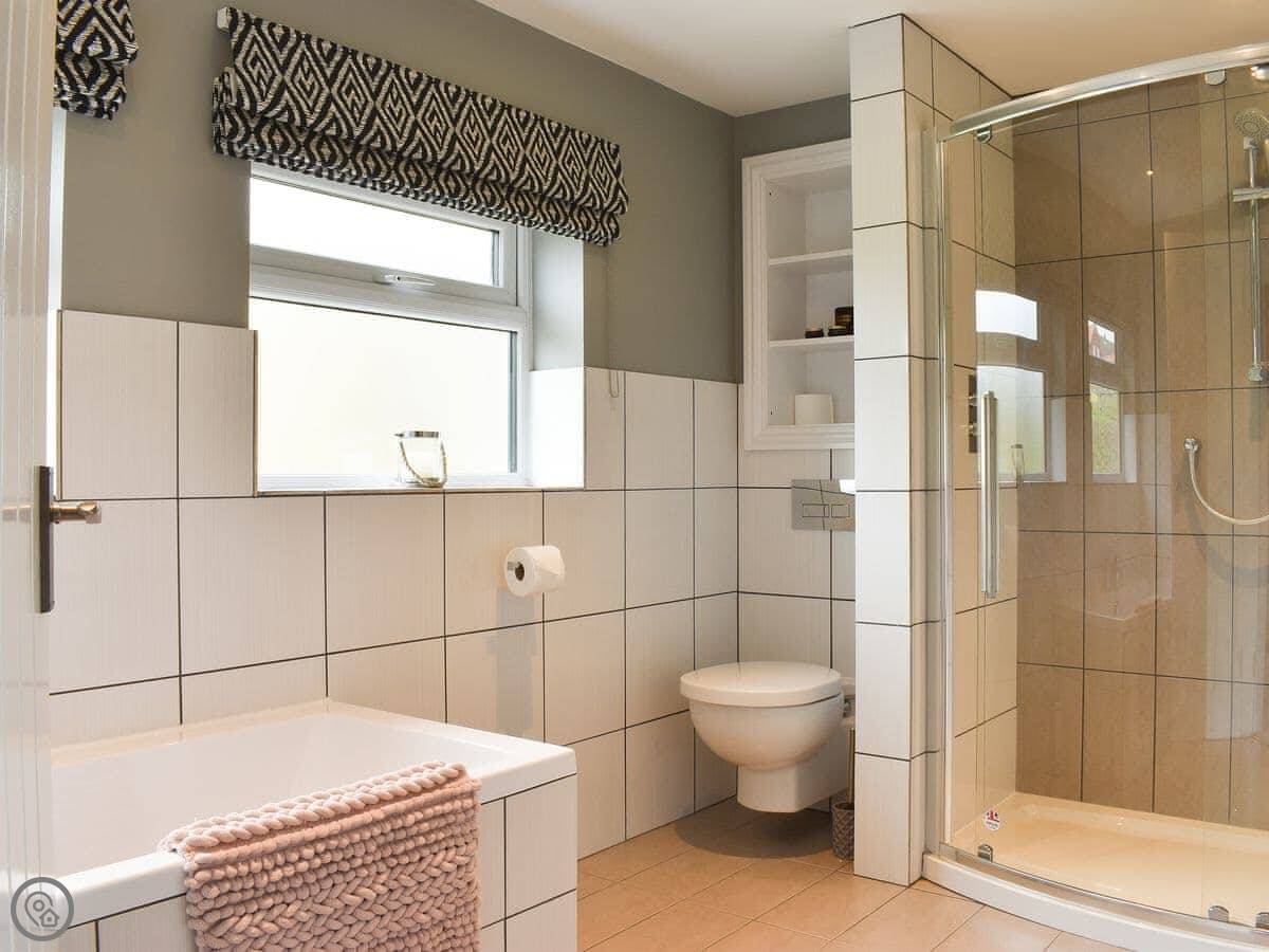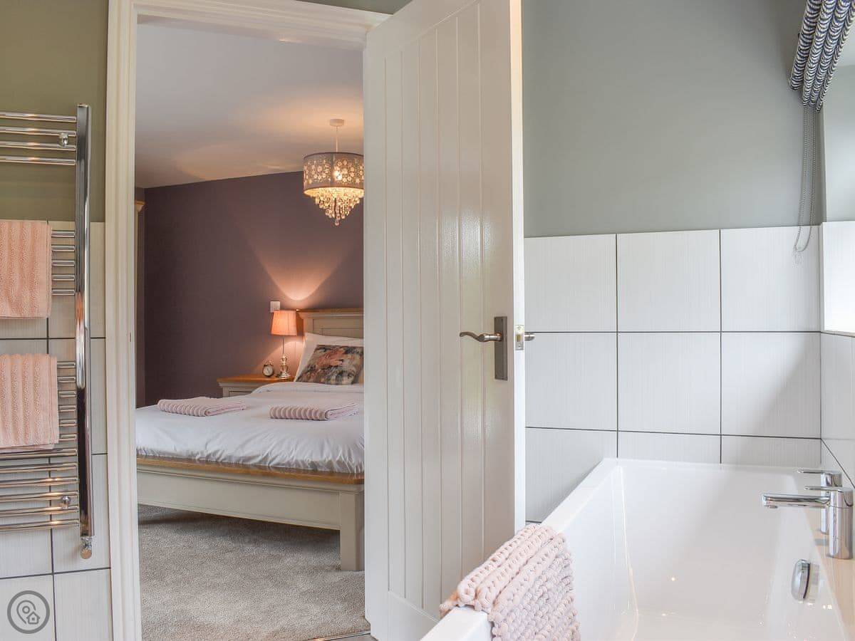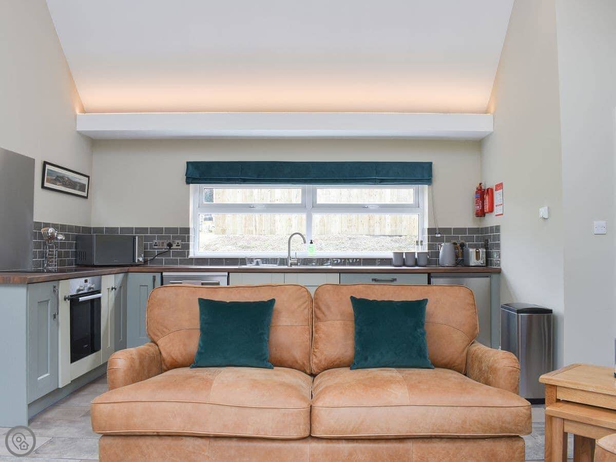 It's been done up recently. It's all on one level, which is handy, and it has underfloor heating. The main room is open plan. Kitchen at one end, sofa at the other. There's a decent TV and the wifi works fine. The bed is a kingsize. The bathroom has both a bath and a separate shower cubicle.