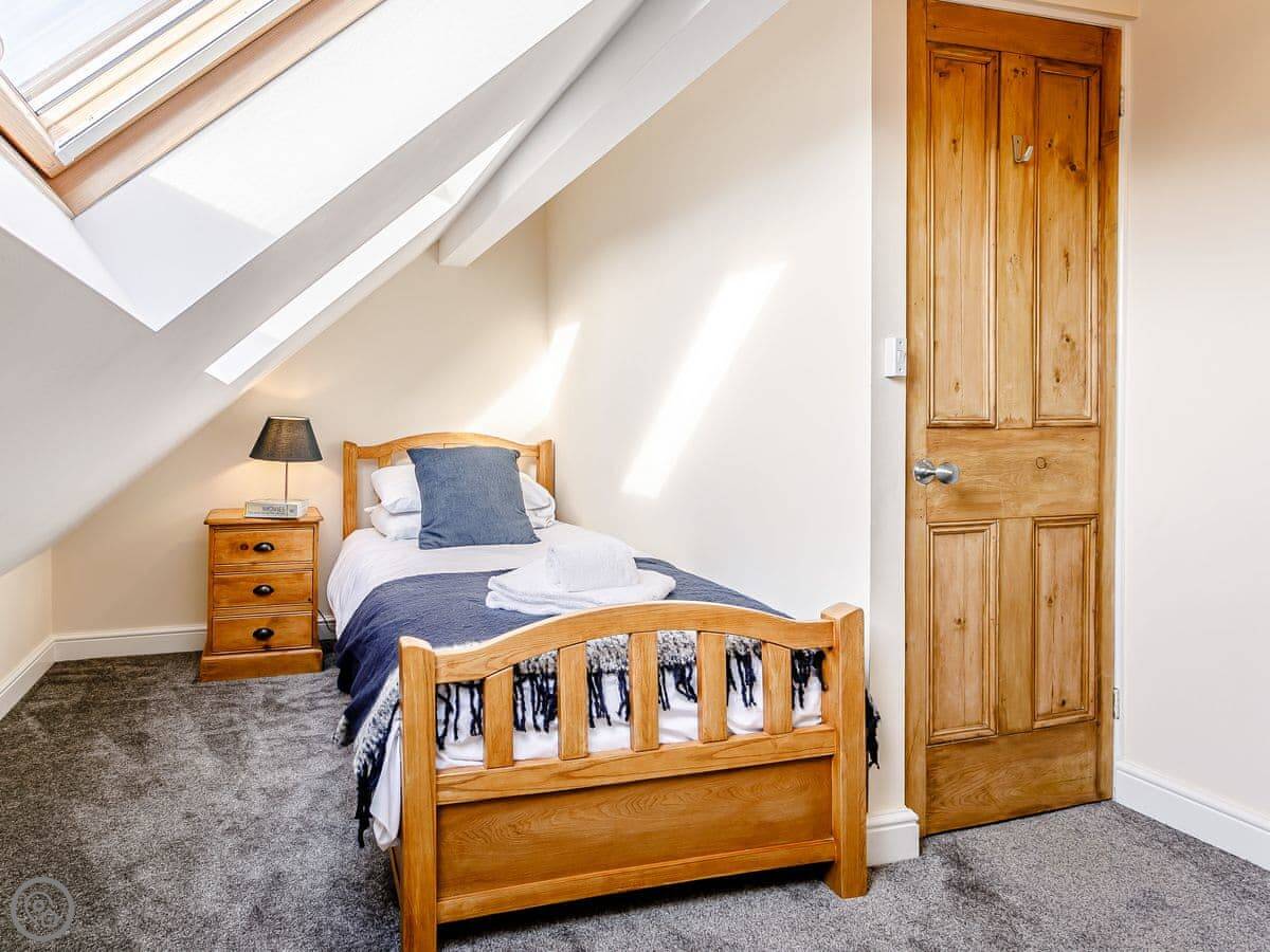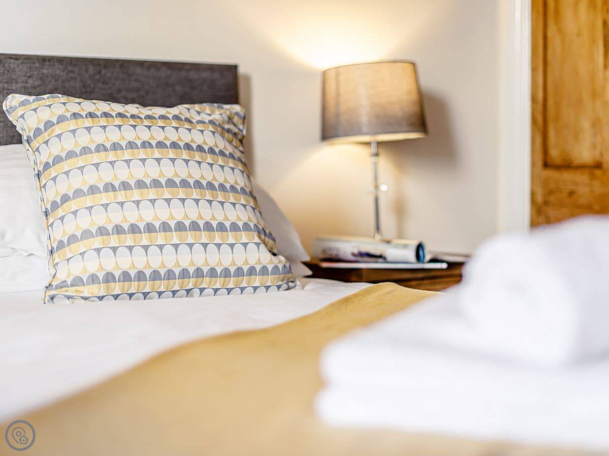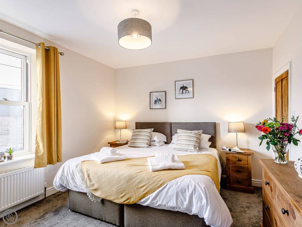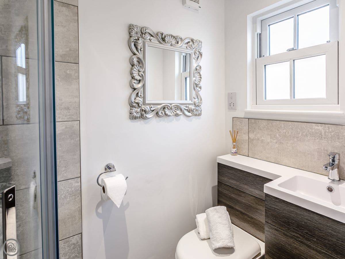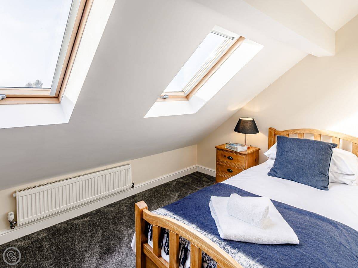 It sleeps five across three bedrooms. Two of the bedrooms have double beds and one is a single. There's a bathroom upstairs and a shower room downstairs.