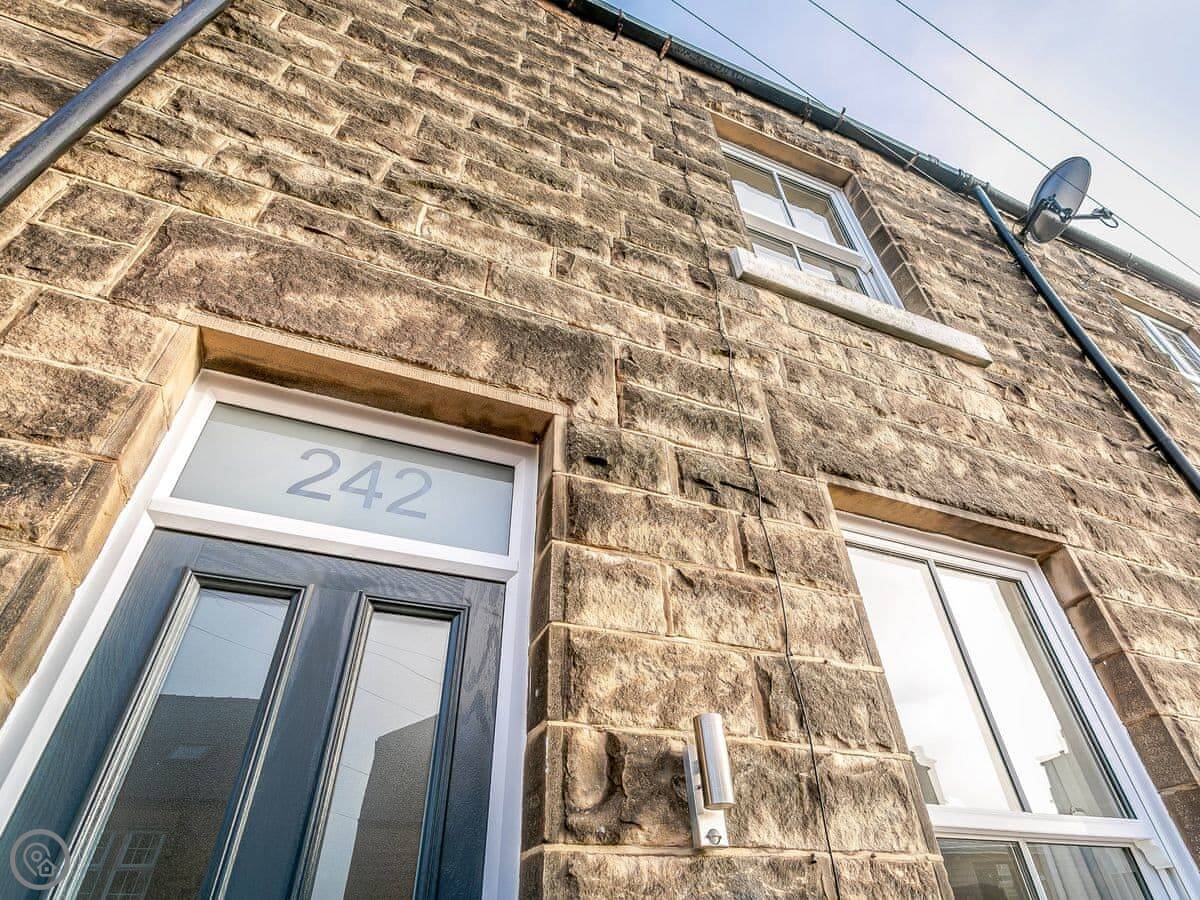 March Cottage is in Matlock, at the top end of town near Smedley Street. It's a terrace cottage, so you've got neighbours on one side. The key thing is it's right on the edge, so the back garden looks over fields and you can step straight out onto the walking paths.