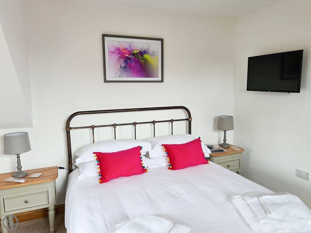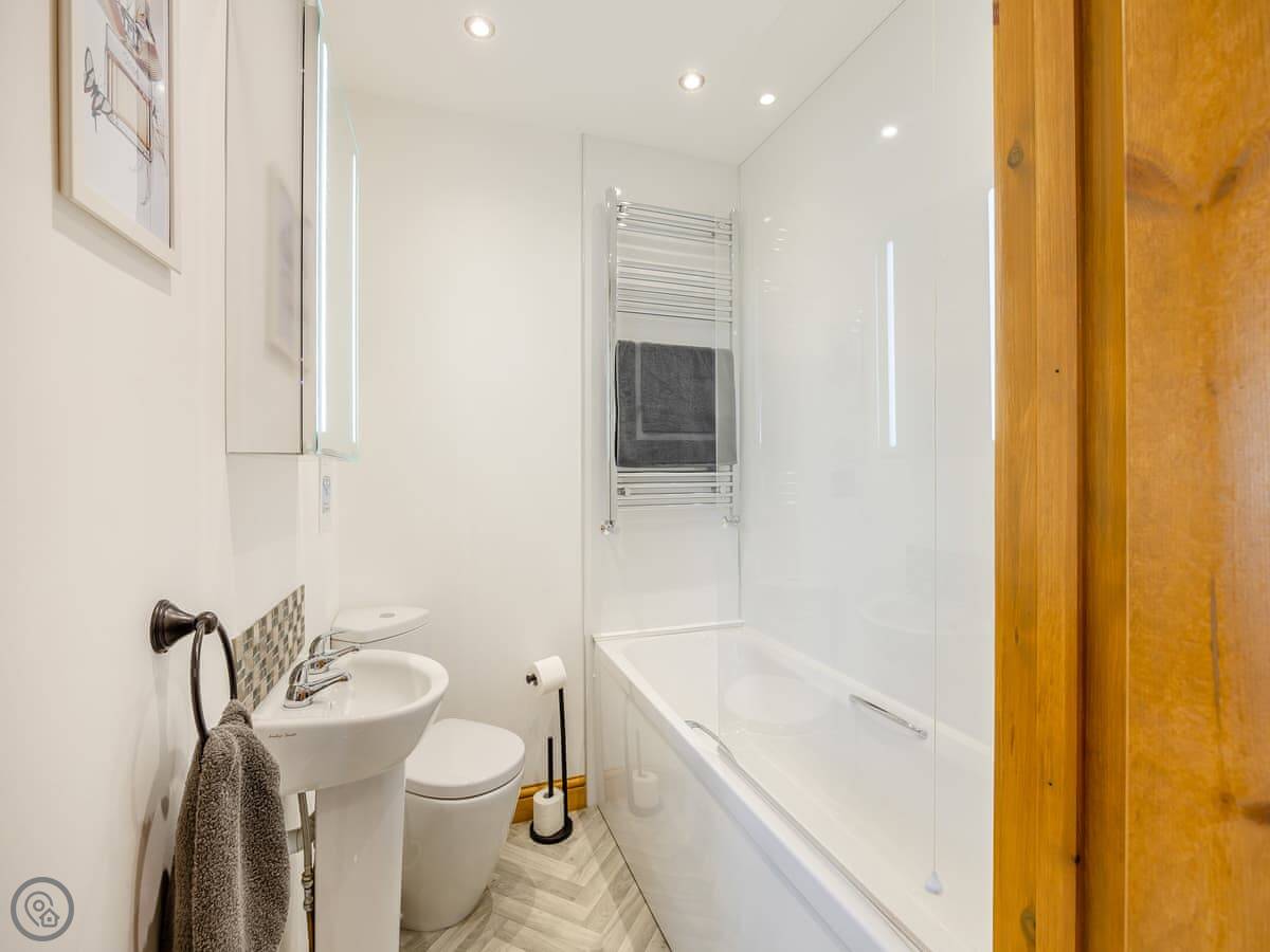 Inside, there's a wood burner in the living room. The kitchen has a dishwasher and there's a washing machine in a utility room. Bedding and towels are included. There's a cot and a highchair if you need them.