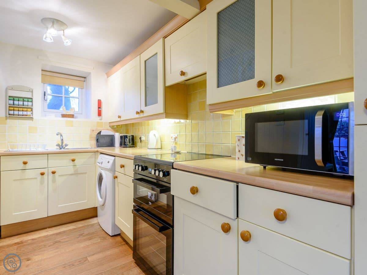The front door is step-free and wide enough for a wheelchair to get in. Inside, everything is on one level. We've got a washing machine and parking right outside.