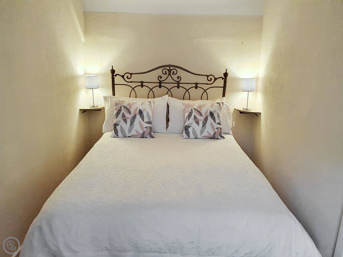 It sleeps two people. One bedroom, one bathroom with a walk-in shower. It has a 4 Star rating, so it's comfortable and well-kept. You can bring one dog.