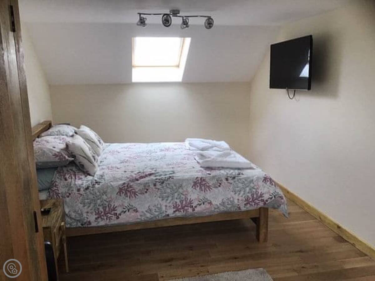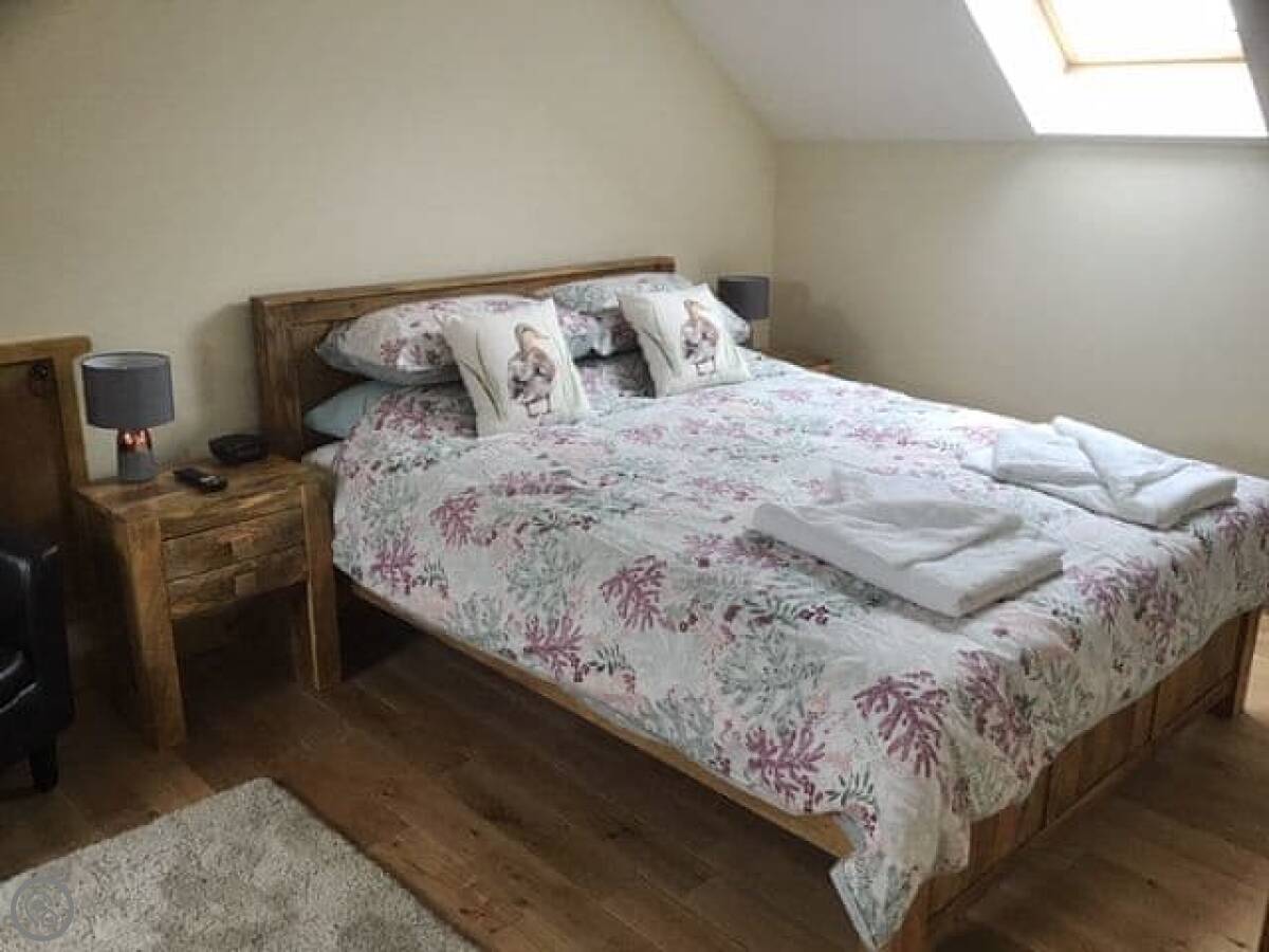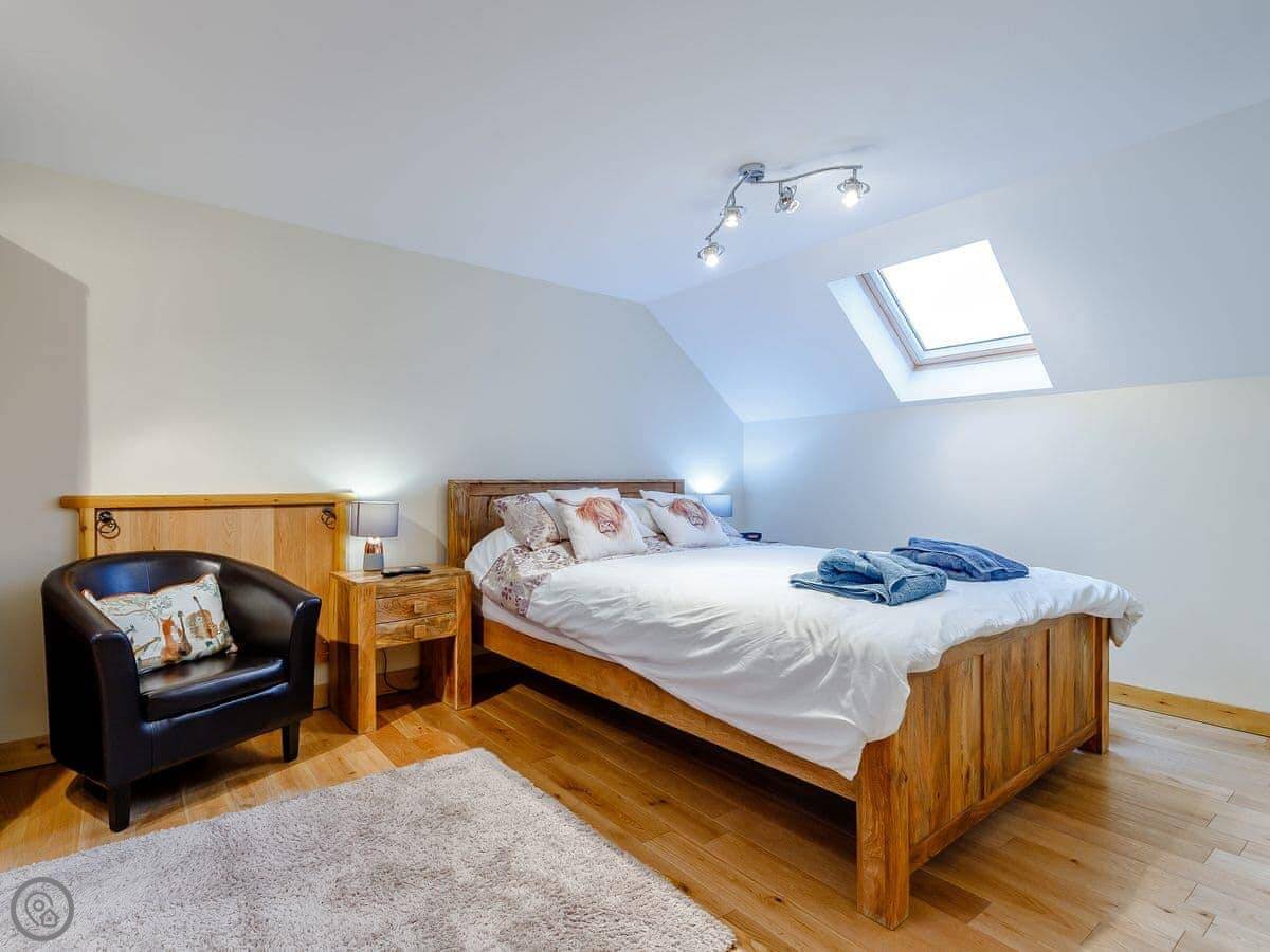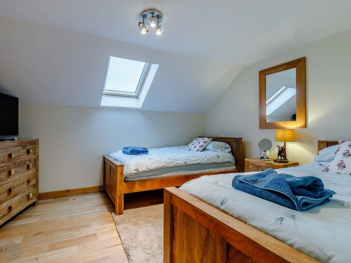It sleeps six. Two bedrooms, both are doubles, and two bathrooms. One bathroom has a spa bath. It's got a 5 Star rating, which means it's well finished and everything works properly. The beams are original and quite low in the kitchen, so watch your head if you're tall.