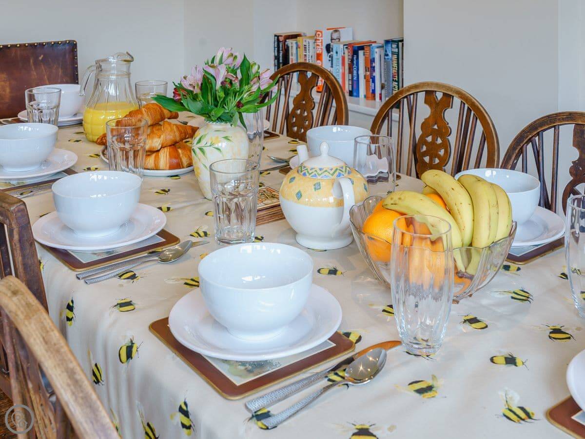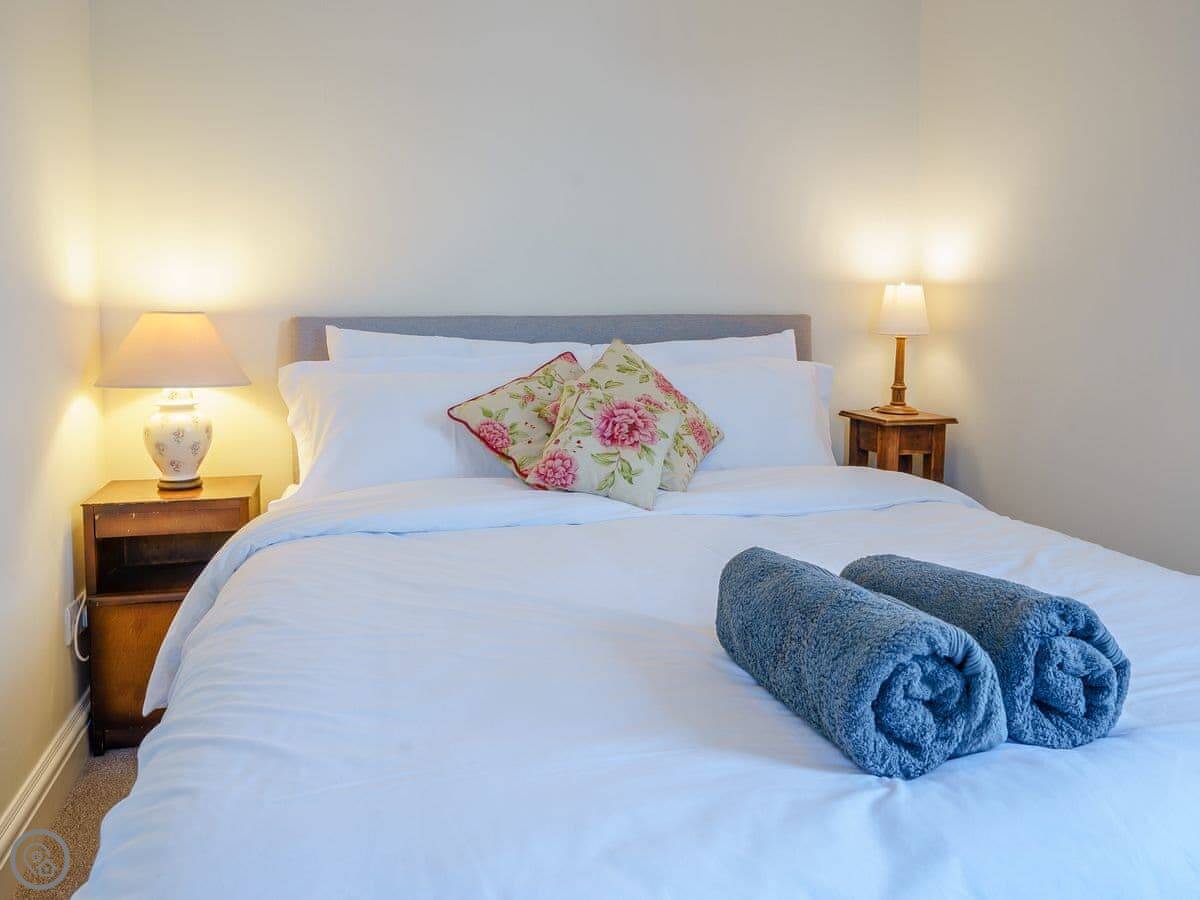 In terms of facilities, it's all there. Bedding and towels are included. There's a cot and a highchair. The entrance is level, so it's wheelchair accessible to get in. Parking is right outside.