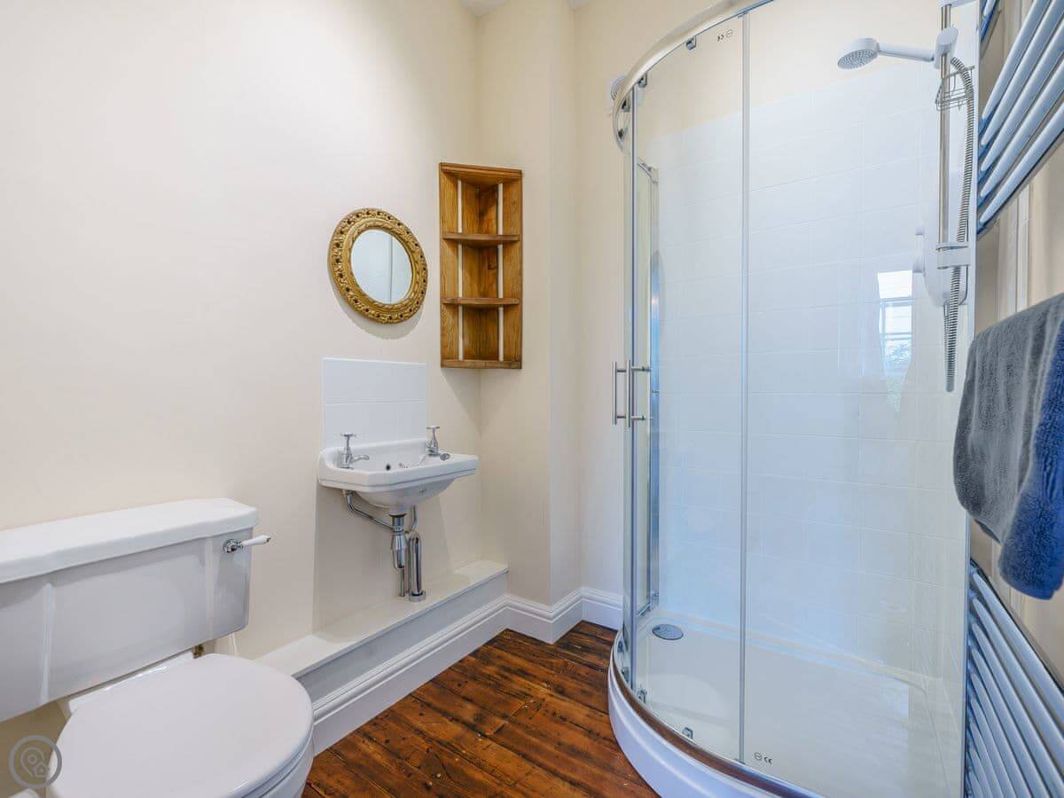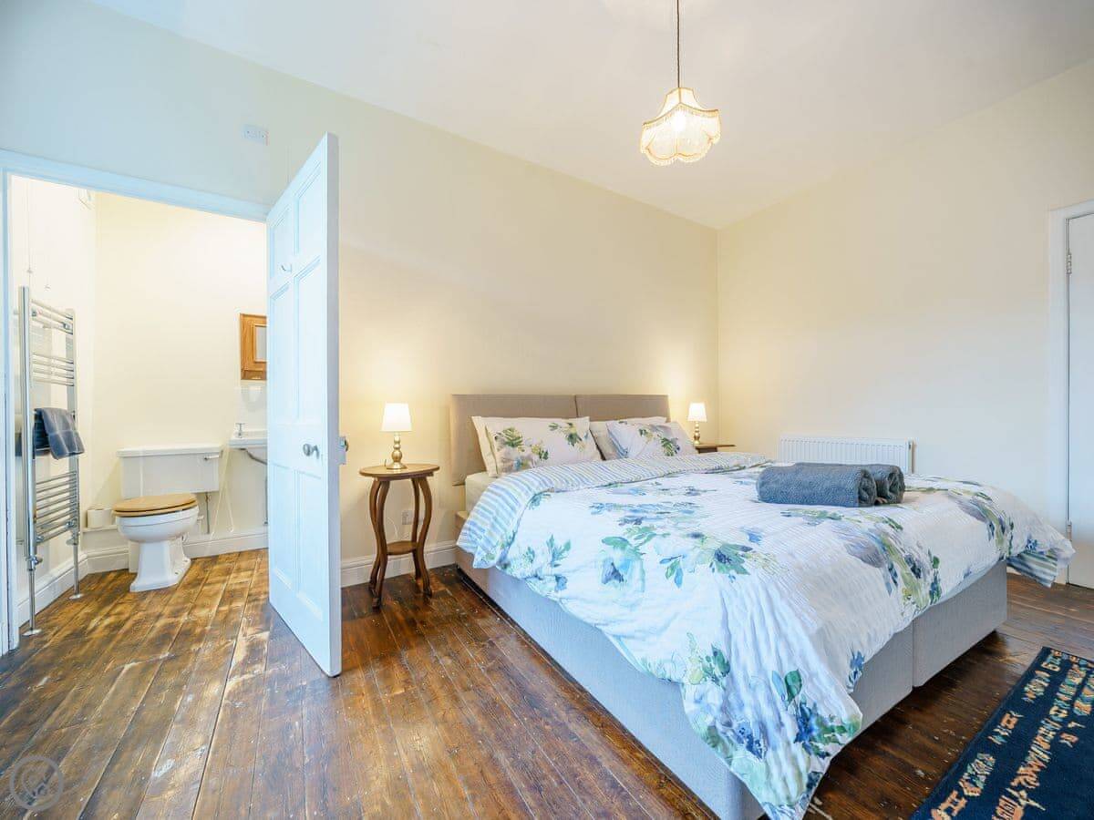 It sleeps eight, with four bedrooms. Two of the bedrooms have their own bathrooms, and there's a third bathroom as well. It's got a 4 Star rating. It's comfortable and clean. The stairs are quite wide.
